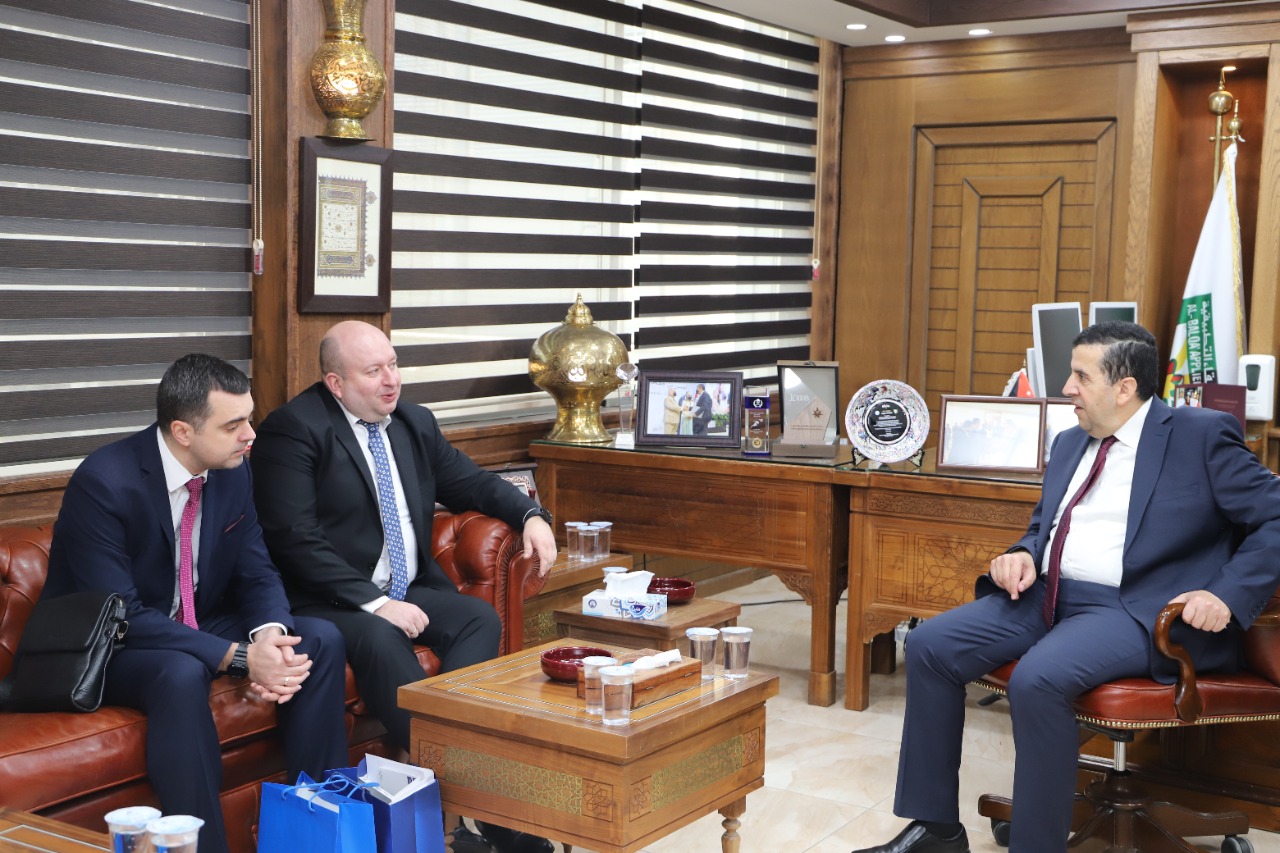 استقبل رئيس جامعة البلقاء التطبيقية الاستاذ الدكتور أحمد فخري العجلوني اليوم في مكتبه الملحق الثقافي الروسي في عمان السيد أليكسي بوكين والوفد المرافق له، بهدف تعزيز التعاون البحثي والاكاديمي والتبادل الثقافي بين البلقاء التطبيقية والجامعات الروسية.