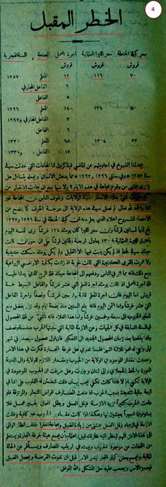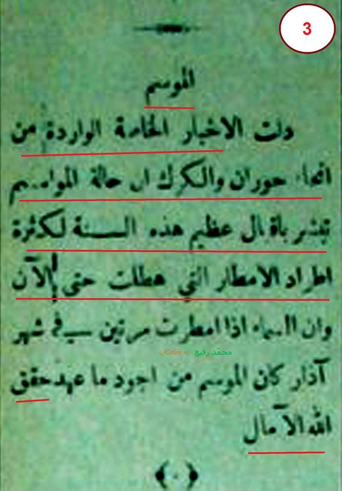 أحوال (المَوسم في الكرك وحوران) و(عَرب البادية ومحاصيل الفلاحين).. و(مَطالب حوران ومَشايخها) و(الأحوال المعيشية في الدولة العثمانية) و(المَتليك) و(ضريبة المِلح)