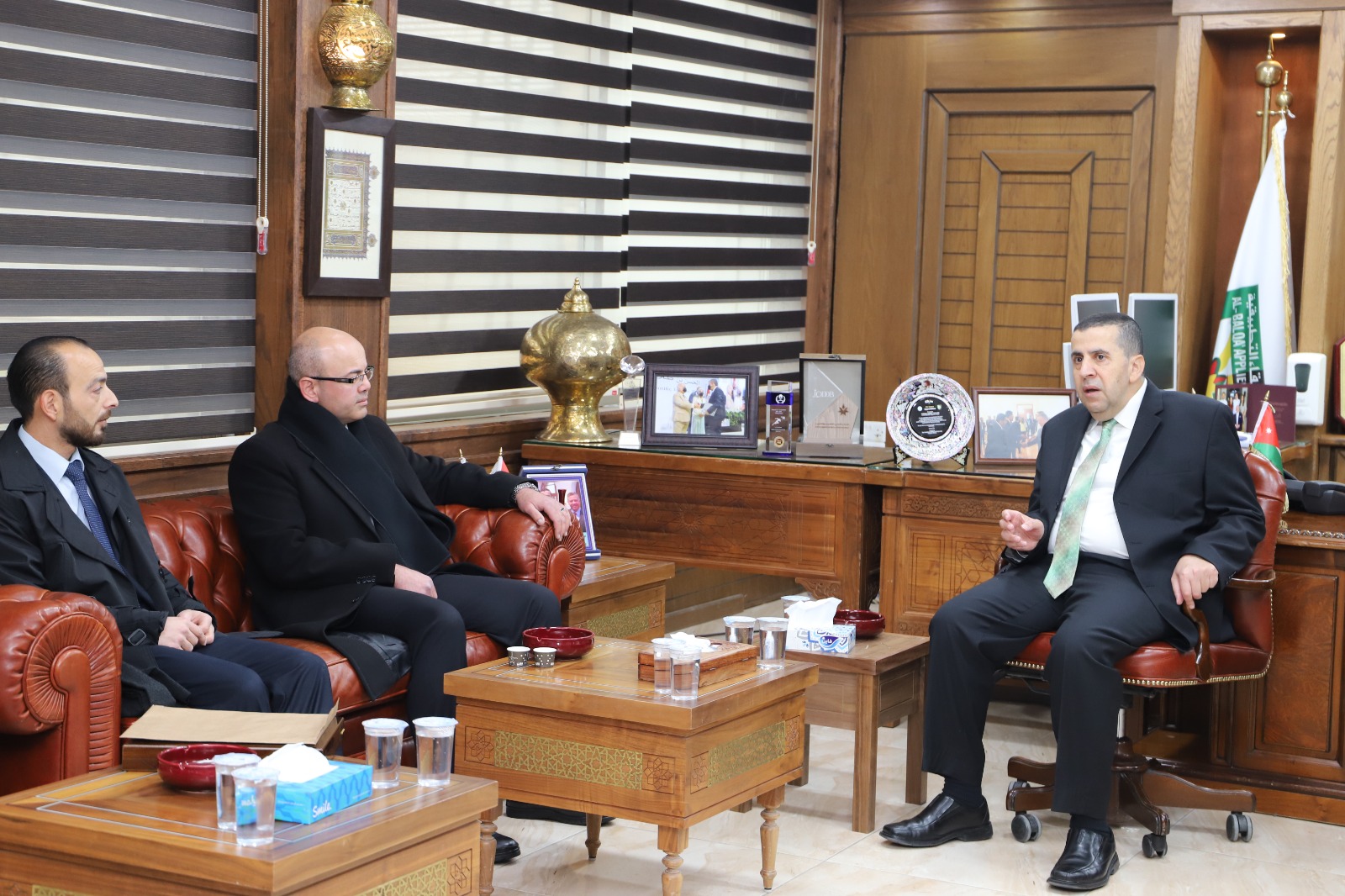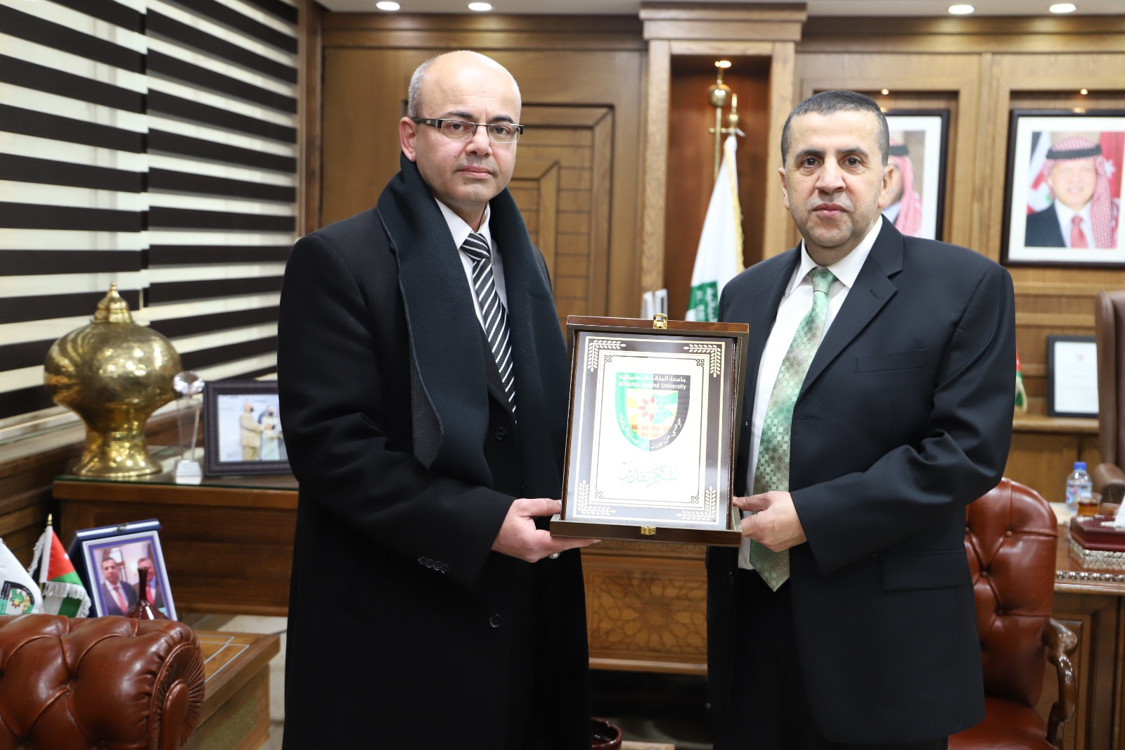 استقبل رئيس جامعة البلقاء التطبيقية الاستاذ الدكتور احمد فخري العجلوني مدير البنك الاسلامي الاردني فرع السلط الاستاذ شادي قطيشات مندوبا عن الرئيس التنفيذي والمدير العام للبنك الدكتور حسين سعيد .