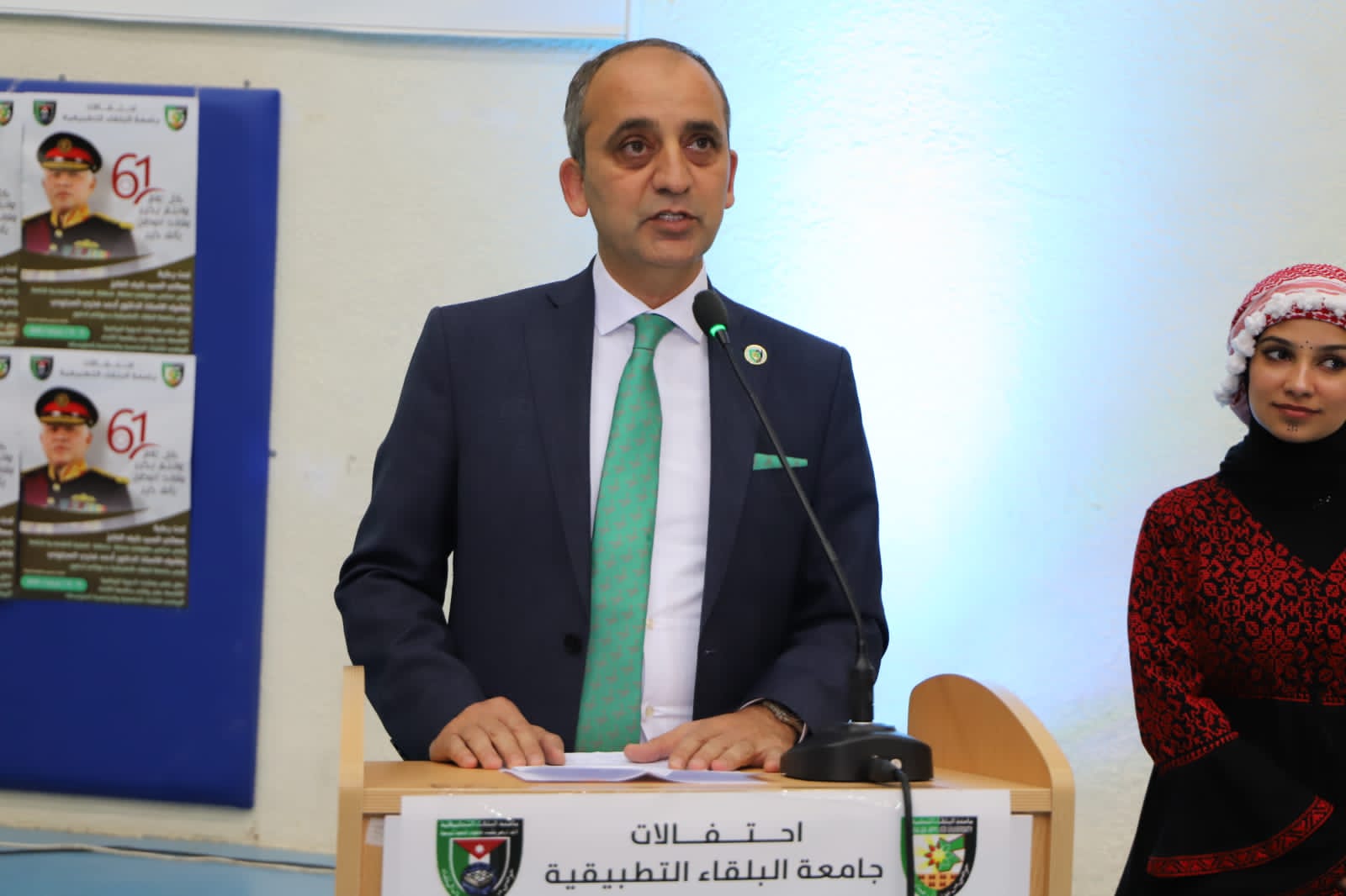 وخلال الحفل الذي حضره نائب محافظ العقبة الدكتور مالك الخريسات ورئيس جامعة العقبة للتكنولوجيا ورئيس جامعة العقبة الطبية ومدير عام كلية الخوارزمي وعدد من أعضاء اللجنة الادارية للاتحاد الرياضي للكليات الجامعية والجامعية المتوسطة - عميد كلية عمان الجامعية وعميد كلية الأميرة عالية الجامعية وعميد كلية الأميرة رحمة الجامعية وعميد كلية الهندسة التكنولوجية وعميد كلية العقبة الجامعية - قال رئيس الاتحاد الرياضي عميد شؤون الطلبة الدكتور خالد الزعبي إننا نحتفل اليوم بهذه المناسبة الغالية على قلب كل أردني وأردنية بالعيد الواحد والستين لميلاد سيد الرجال جلالة الملك عبدالله الثاني ابن الحسين المعظم، عميد ال البيت الأطهار، وإننا نفتخر اليوم بأن تكون جامعة البلقاء التطبيقية ومن خلال كلياتها منارة للعلم والمعرفة ومقصدا للطلبة في ظل إدارة تسعى لتنفيذ توجيهات جلالة الملك عبدالله الثاني ابن الحسين المعظم في أن تعود جامعاتنا مقصدا لطلبة العلم والمعرفة من شتى بقاع المعمورة، وهي اليوم تحقق ما تخطط له حتى أصبحت اكبر جامعة حكومية في الأردن يرتادها الطلبة من كافة مناطق المملكة وتنشر العلم والمعرفة في ربوع اردننا الأغلى.