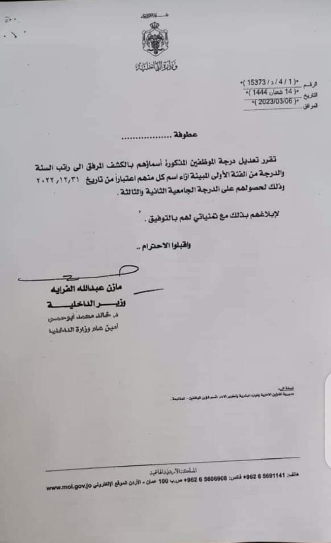 تعديل درجات عدد من الموظفين في وزارة الداخلية-أسماء