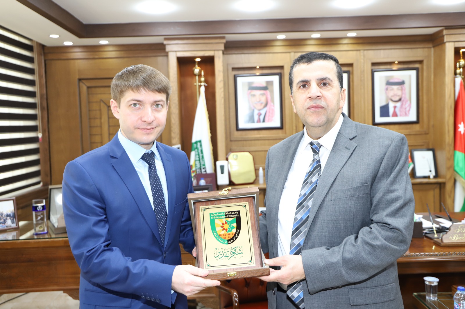 بحث رئيس جامعة البلقاء التطبيقية الأستاذ الدكتور أحمد فخري العجلوني مع رئيس جامعة شمال القوقاز الاتحادية في روسيا الدكتور ديمتري بيسيالوف سبل إقامة التعاون البحثي العلمي والتبادل الأكاديمي بين جامعة البلقاء التطبيقية وجامعة شمال القوقاز الإتحادية.