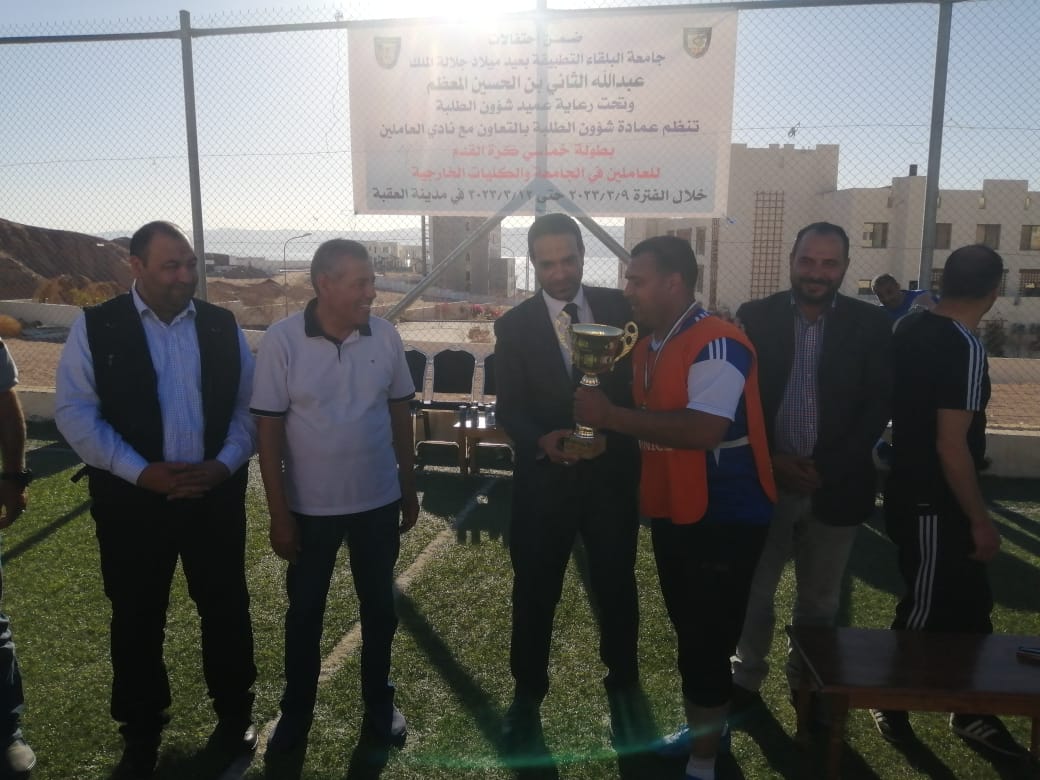 اختتمت مساء اليوم فعاليات بطولة القائد التي نظمتها عمادة شؤون الطلبة بالتعاون مع نادي العاملين للعاملين في جامعة البلقاء التطبيقية والكليات التابعة لها ، بفوز فريق نادي مركز الجامعة على فريق كلية الاميرة رحمة الجامعية.