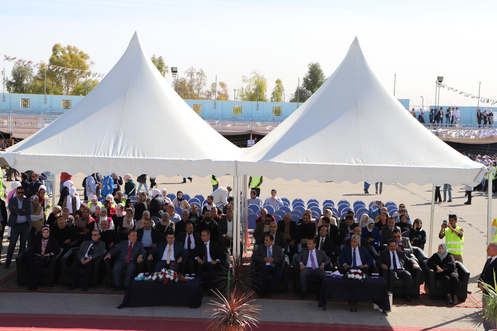 رعى رئيس جامعة البلقاء التطبيقية الأستاذ الدكتور أحمد فخري العجلوني الإحتفال بالعيد الواحد والستين لميلاد جلالة الملك عبدالله الثاني ابن الحسين المعظم والذي نظمته عمادة شؤون الطلبة وبمشاركة كافة كليات الجامعة وبحضور نواب رئيس الجامعة وعمداء الكليات والطلبة على ملعب الجامعة.