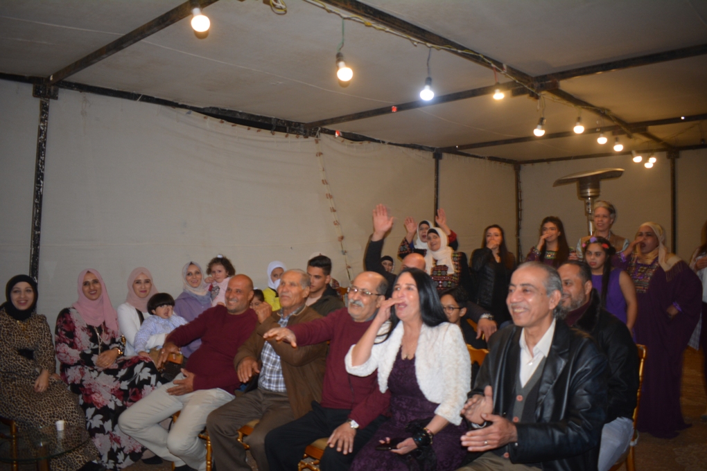 وبالوقت ذاته اقيمت الافراح، بمبادرة من الأحبة، في منزل والد العريس سمير عبد الفتاح الرمحي “ابو عبود” وزوجته الاعلامية رضى عليان في الاردن، حيث تفاعلوا مع وقائع الفرح على شاشة تلفزيون عبر السكايب وشاركهم الفرحة عدد من الاقارب والأصدقاء.