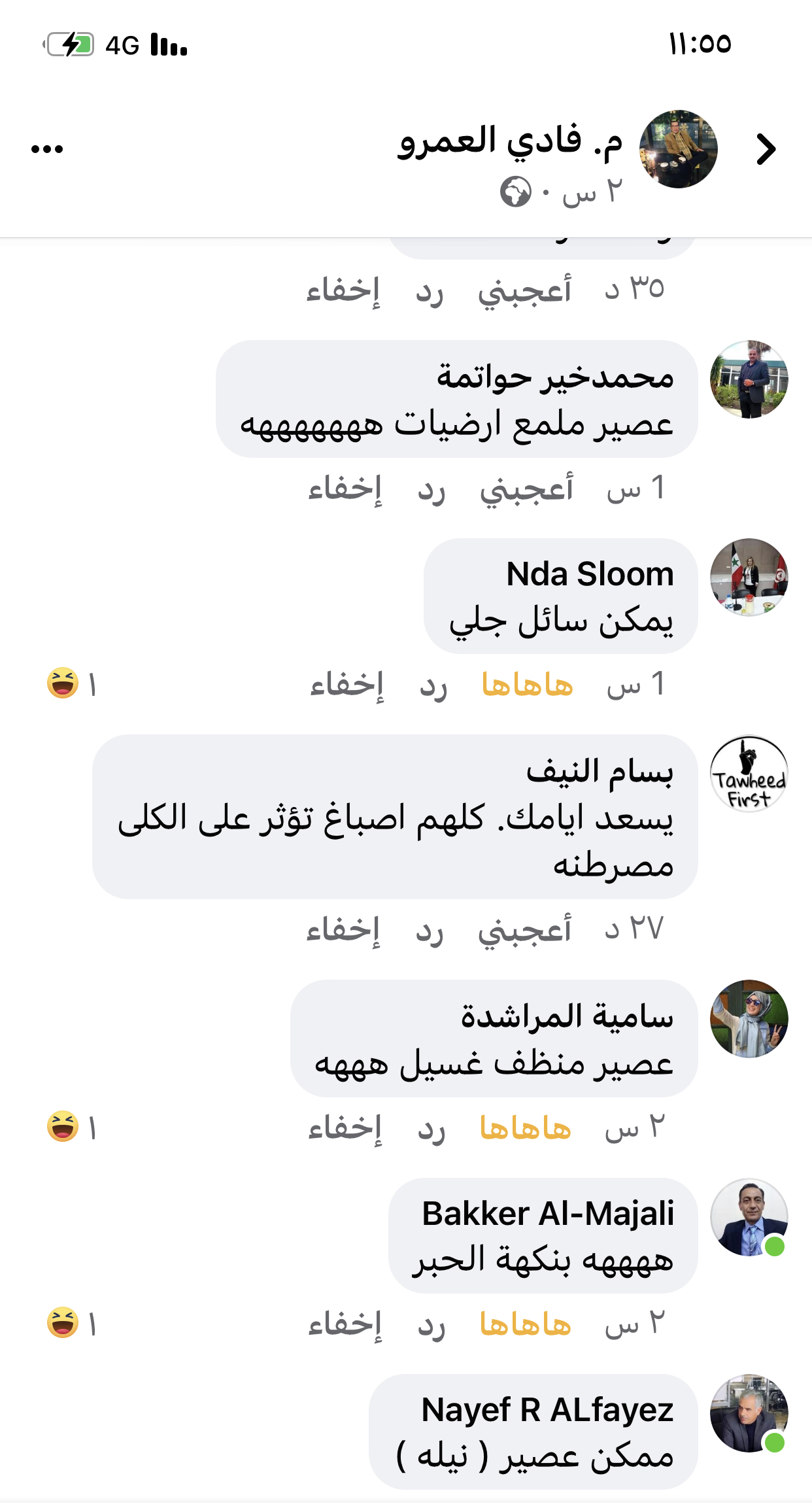 وقال الناشط اكثم الصرايرة ان هذا ليس عصير بل معطر غسيل في تعليق ساخر عبر الفيسبوك جاء فيه :-