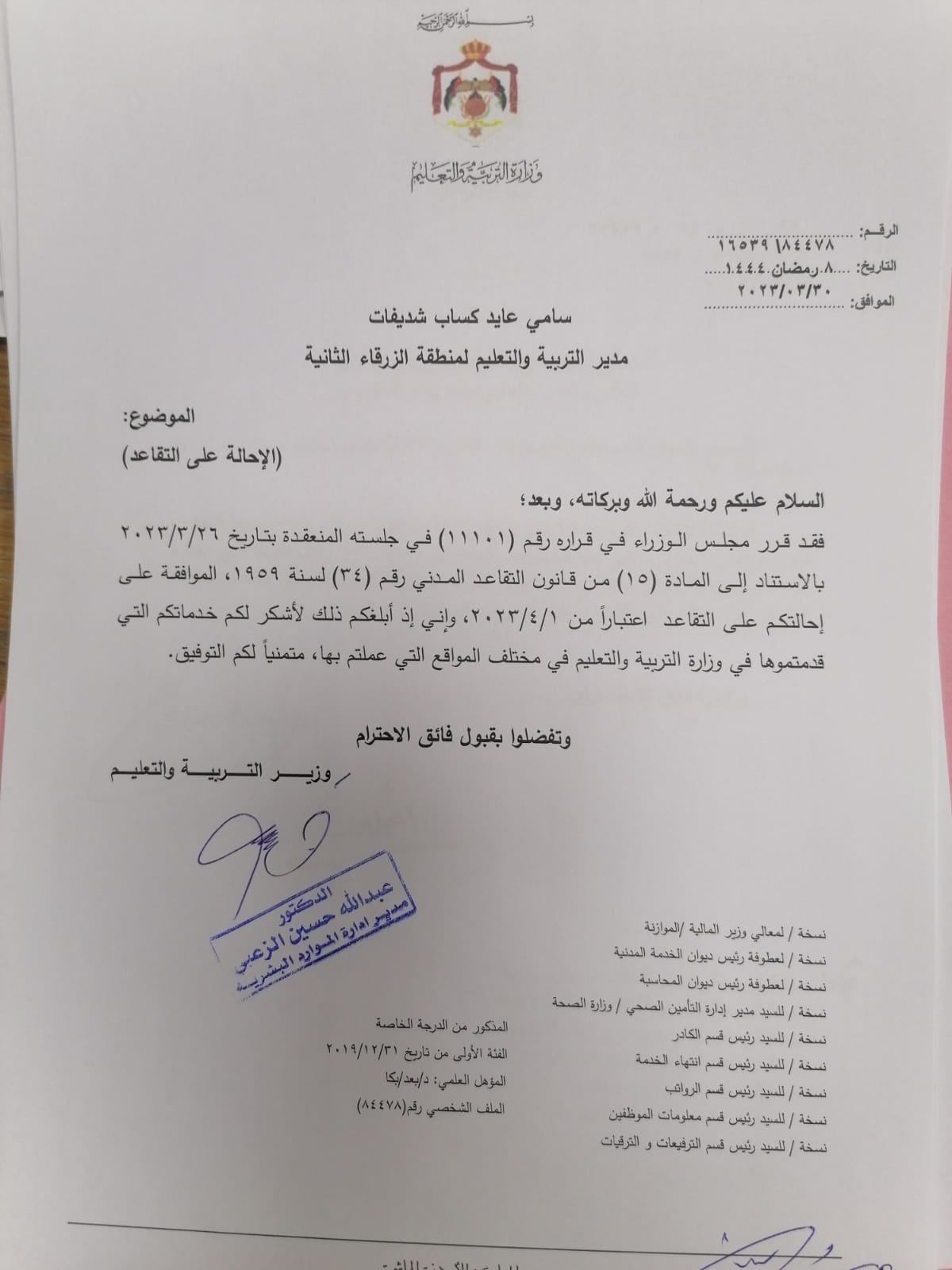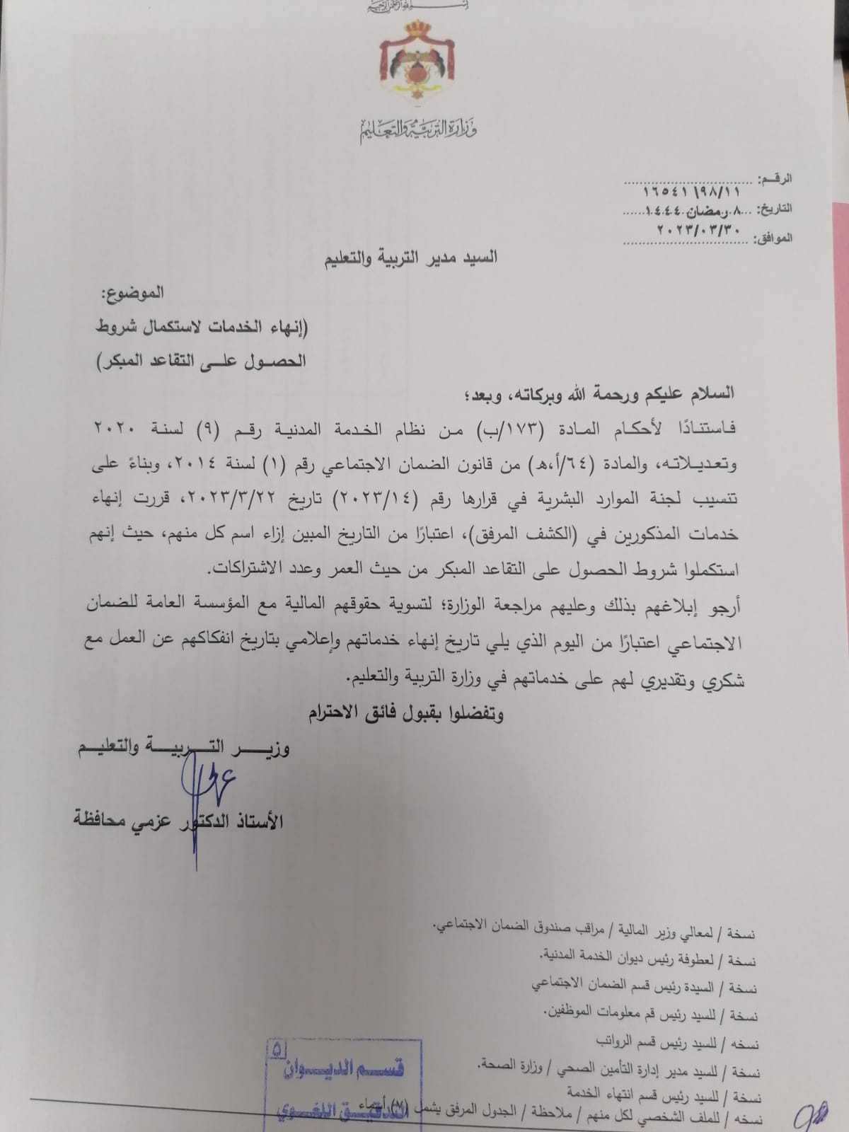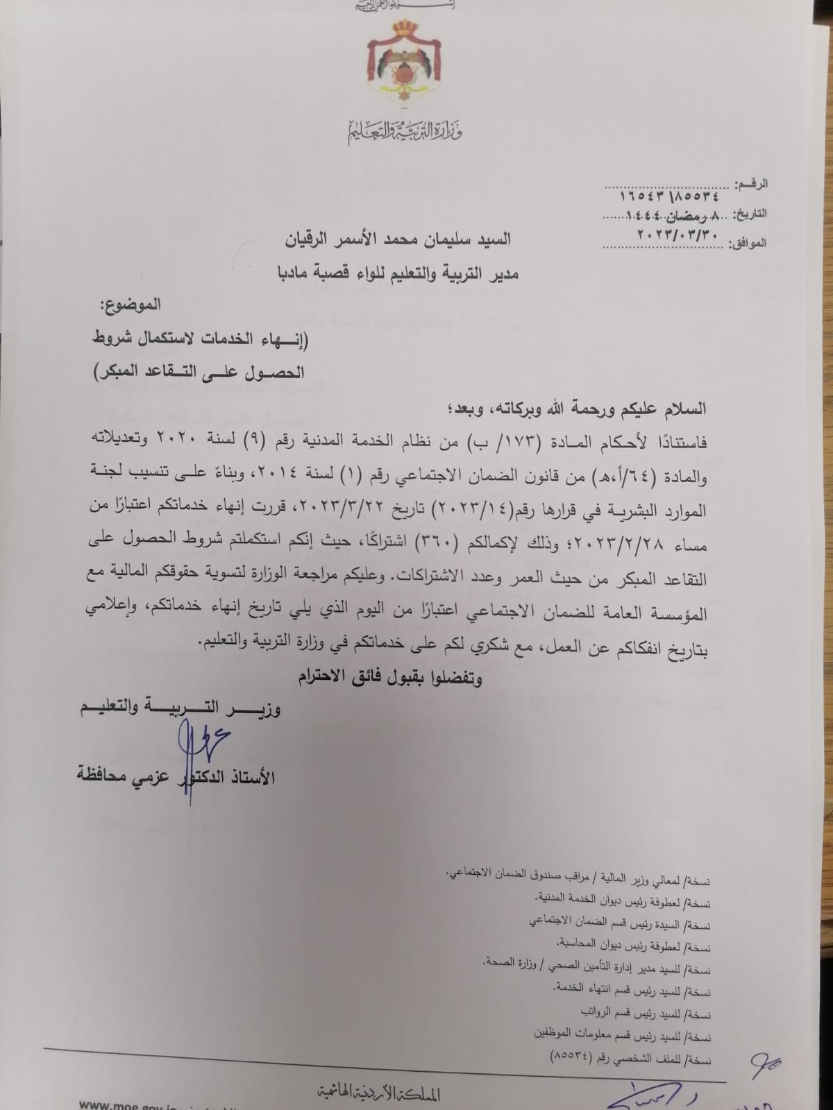 تشكيلات واحالات على التقاعد في وزارة التربية والتعليم