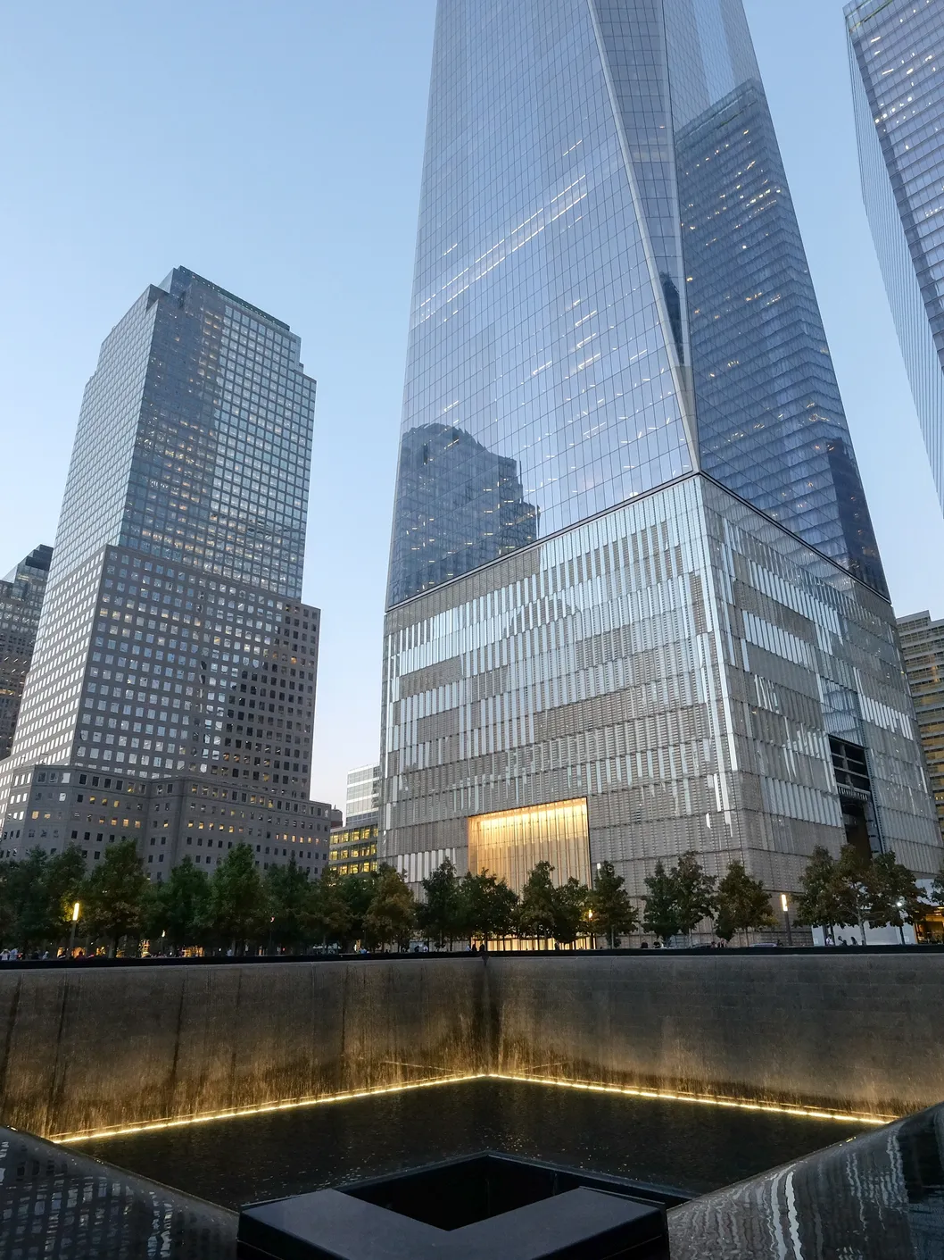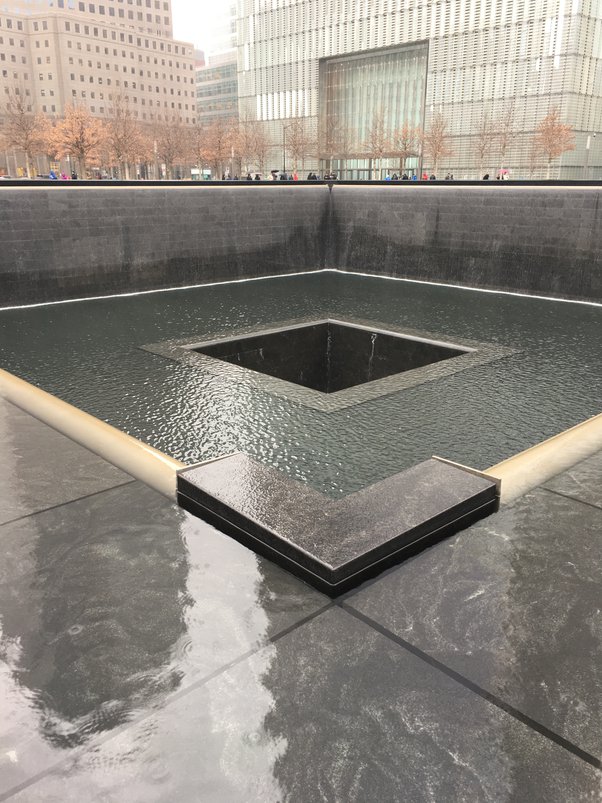 وتم إقامة نصب تذكاري ومتحف وطني و (المعروف أيضًا باسم متحف و 11 سبتمبر) في مكان الحادث وهو نصب مائي ومتحف في مكان انهيار البرجين لإحياء ذكرى هجمات 11 سبتمبر عام 2001 ، والتي أودت بحياة 2977 شخصًا ، البرجين التوأمين اللذين دُمرا خلال هجمات 11 سبتمبر واصبحن من الذاكرة ويستطيع الزائر مشاهدة قواعد البناء فقط لأحد البرجين والاخر مكانه النصب المائي ومكتوب على جدرانه اسماء الضحايا . و يتم تشغيل المكان من قبل مؤسسة غير ربحية تتمثل مهمتها في جمع الأموال لبرمجة وتشغيل النصب التذكاري والمتحف في موقع مركز التجارة العالمي.