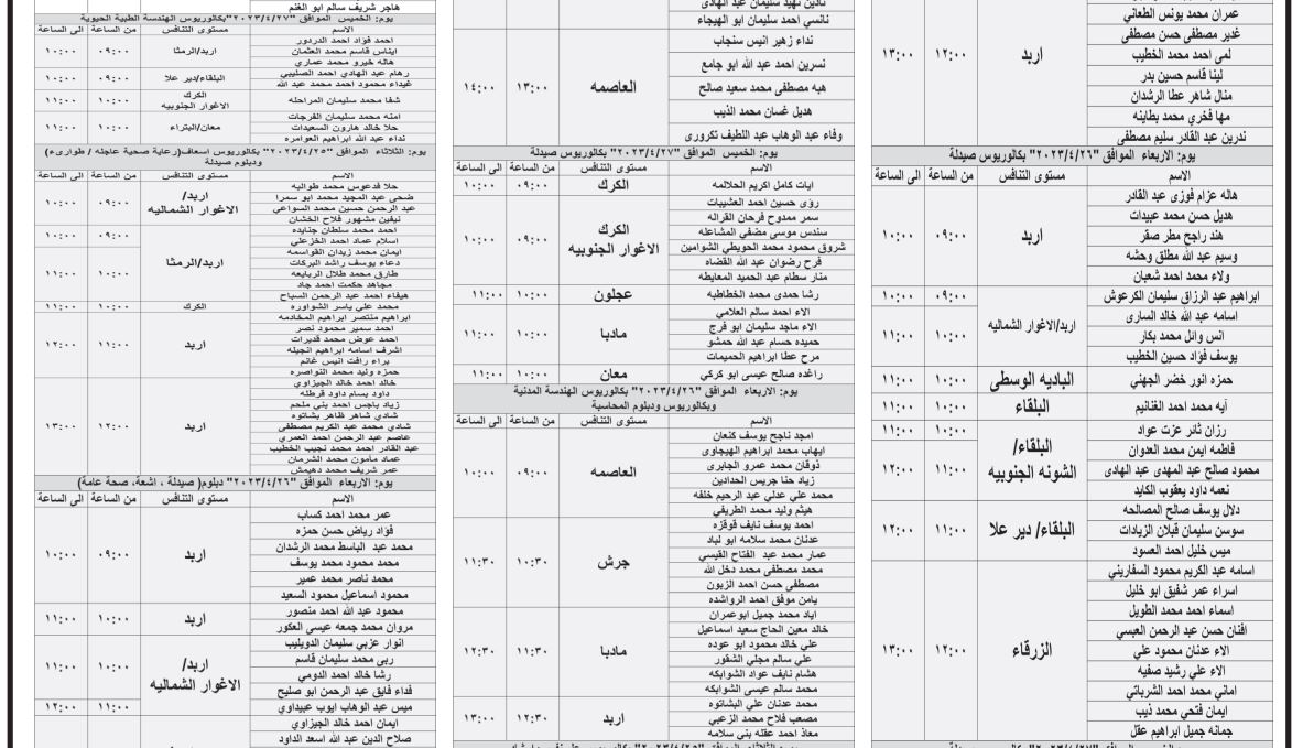 دعت وزارة الصحة، اليوم الأربعاء، بالتنسيق مع ديوان الخدمة المدنية، عدداً من المرشحين الذين اجتازوا الامتحان التنافسي بنجاح، إلى مراجعة مديرية التمريض لإجراء المقابلات الشخصية .