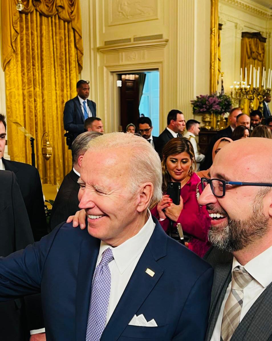 وعن قصة صورة "السيلفي" التي جمعته بالرئيس الأمريكي قال: "قلت لبايدن بدي سيلفي والبيت الأبيض خلفي، فأخذ تلفوني وهو عمل السيلفي (...)".
