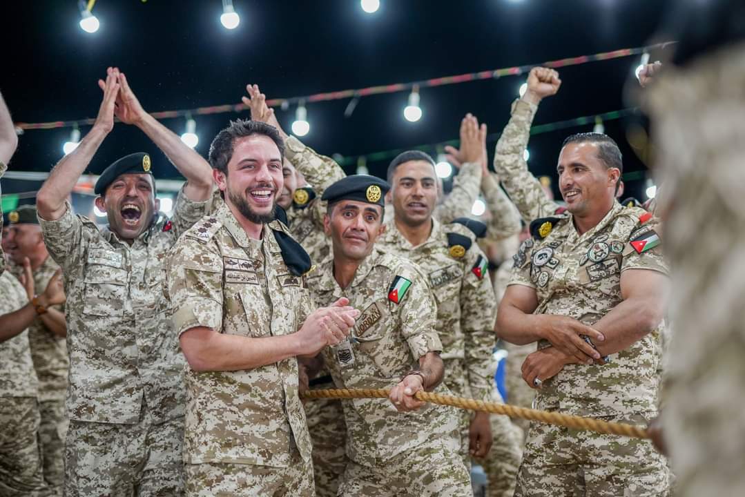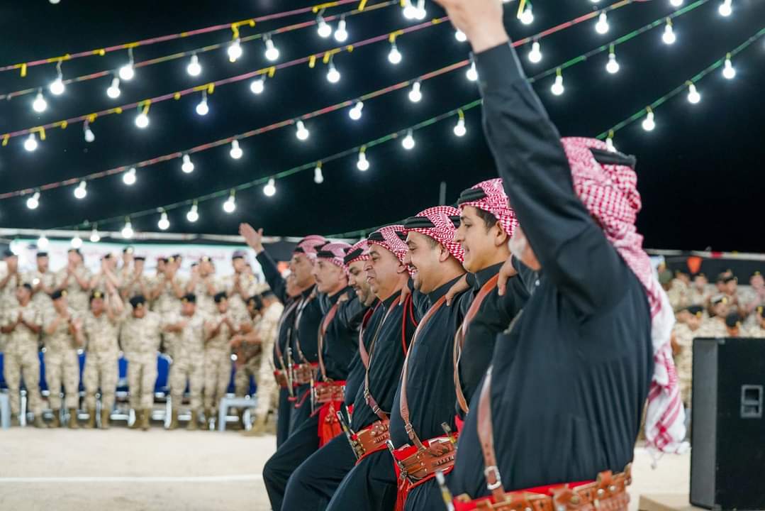وشارك سمو ولي العهد، رفاقه من الضباط وضباط الصف والجنود، بحضور سمو الأمير هاشم بن عبدالله الثاني، احتفاءهم الذي اشتمل على فقرات شعرية وغنائية ووصلة سامر ودبكة شعبية، فضلا عن شد الحبل وتركيب الأسلحة وفكها.