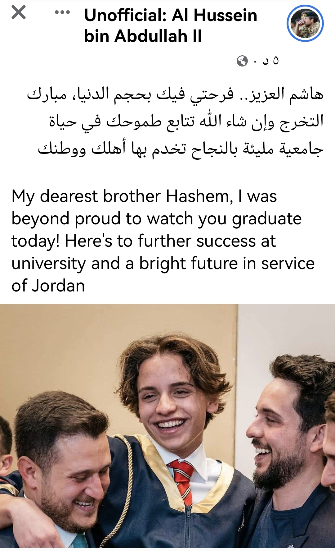 الأمير الحسين لشقيقه هاشم: فرحت فيك قد الدنيا