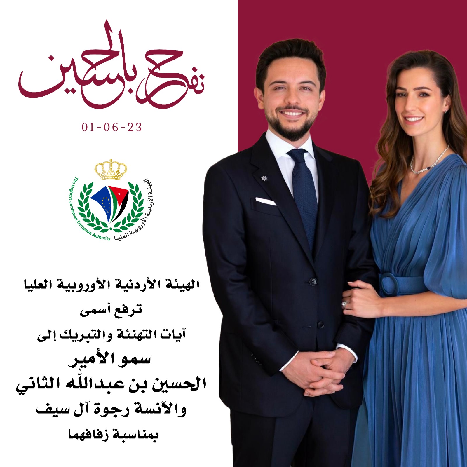 الهيئة الأردنية الأوروبية العليا تهنئ بمناسبة زفاف ولي العهد