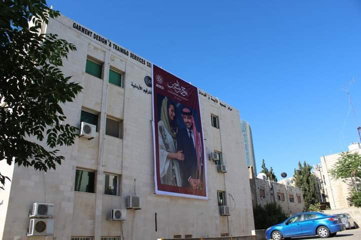 المؤسسة الأردنية لتطوير المشاريع الاقتصادية والشركات التابعة والشركاء من القطاع الخاص يزينون عدة مناطق بصور سمو الأمير الحسين ولي العهد وعروسته احتفالاً بزفافه الميمون.