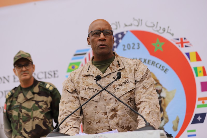 في تصريحات إعلامية أمام مسؤولين عسكريين مغاربة وأمريكيين وملاحظي الدول الشريكة، أعقبت اختتام مناورات “الأسد الإفريقي 2023” بتمارين ضخمة برية وجوية، سجل لانغلي أن “ما شاهدناه اليوم خلال هذه المناورات هو دليل واضح على العمل الجماعي والعمل بروح فريق متكامل في لحظات حاسمة”.
