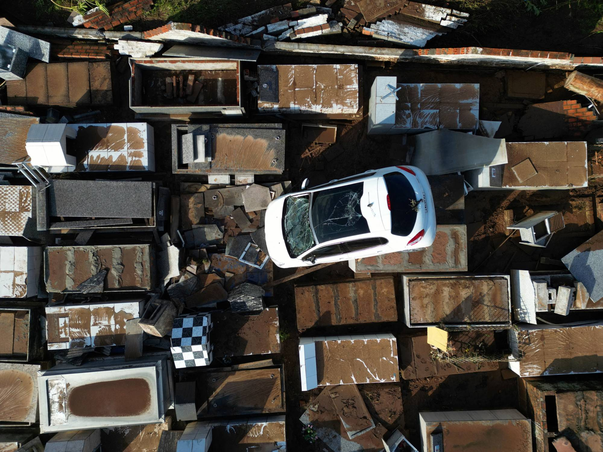 وبثت وسائل إعلام محلية صوراً لسيارة جرفتها الرياح العاتية إلى داخل مقبرة.