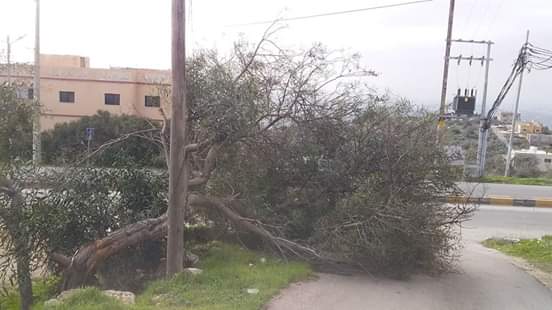 الى ذلك ، فقد سقطت شجرة لزاب طولها ١٥ امرا على الشارع الرئيس الواصل لمنطقة الحمة الأردنية ولم تقع اضرار بشرية أو مادية جراء ذلك.