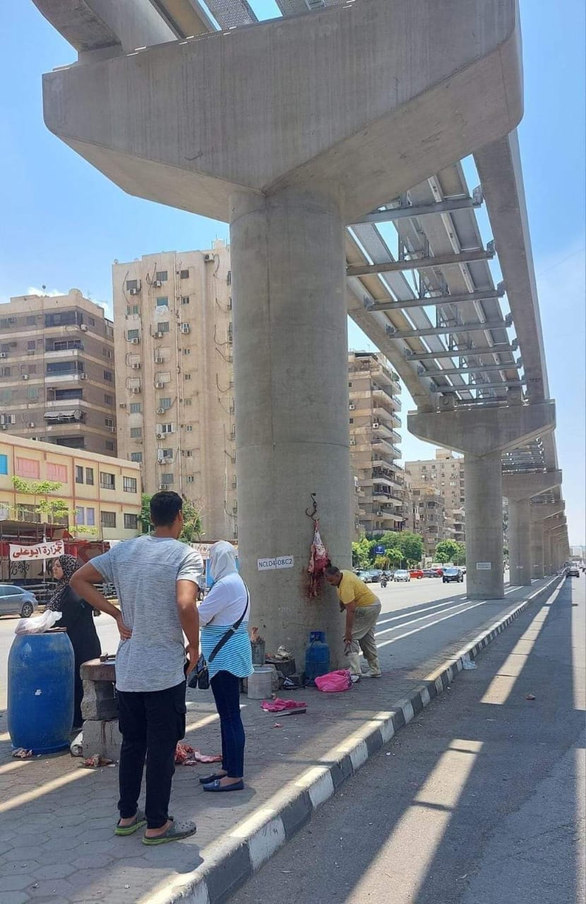 وعمل الجزار فتحة لتعليق اللحوم الخاصة بمحل الجزارة الخاص به والقريب من المونوريل، على عمود الكوبري الموجود في شارع ذاكر حسين بمدينة نصر، وتسبب ذلك في تغريمه 112 ألف جنيه مصري ما يعادل (3600 دولار).