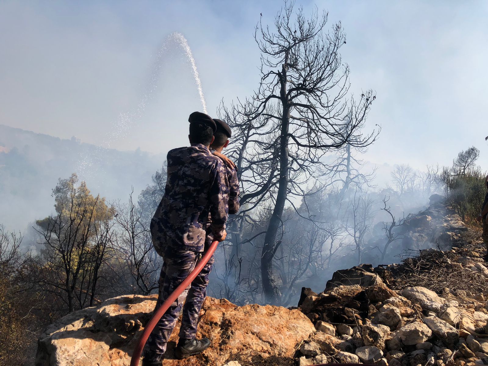 *شارك في عمليات إخماد الحريق ما يزيد عن (100) آلية عمليات مختلفة بالإضافة إلى ثلاث طائرات من سلاح الجو الملكي وما يزيد عن (500)مشارك من مرتبات جهاز الأمن العام بكافة تشكيلاته