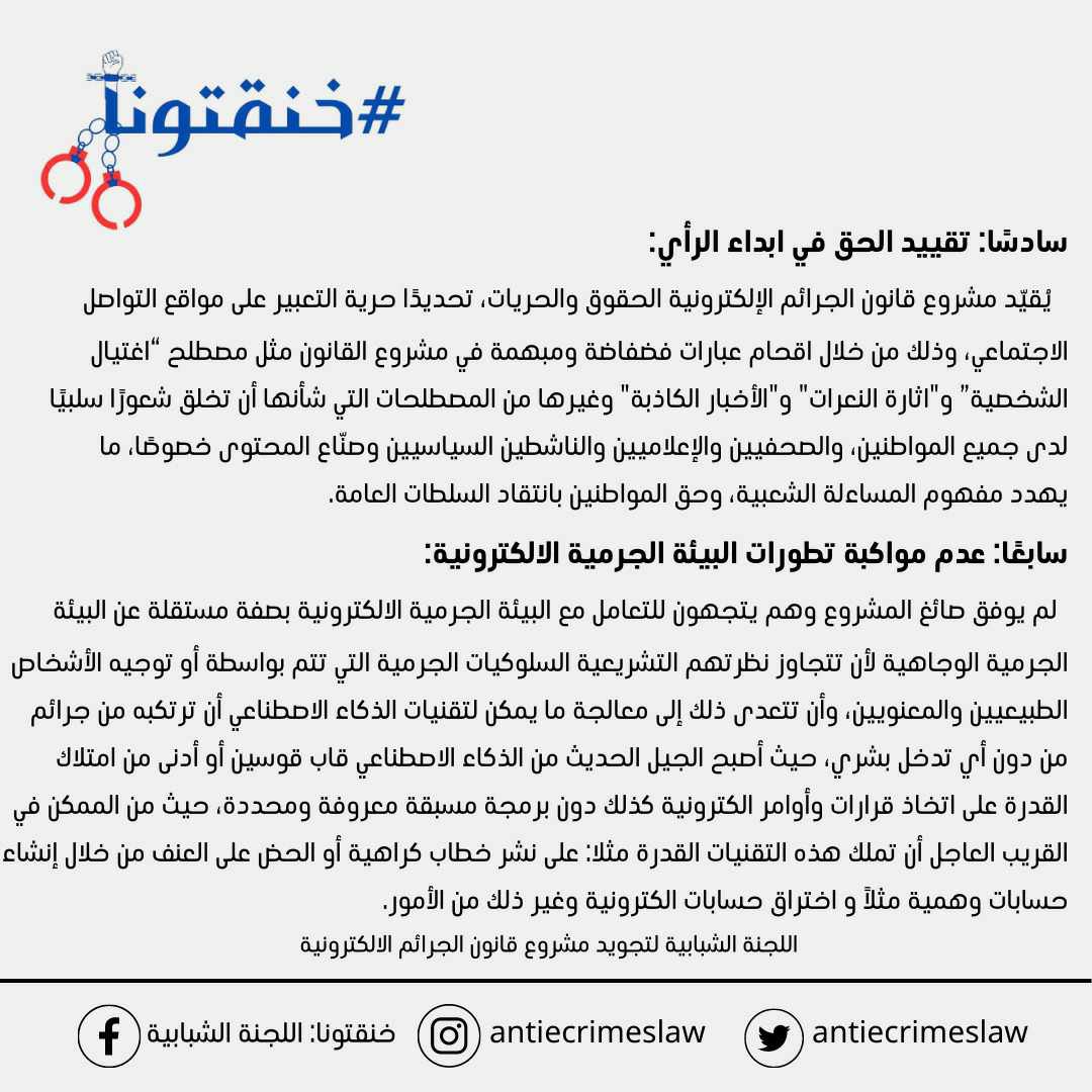 حملة خنقتونا: اللجنة الشبابية لتجويد مشروع قانون الجرائم الالكترونية.