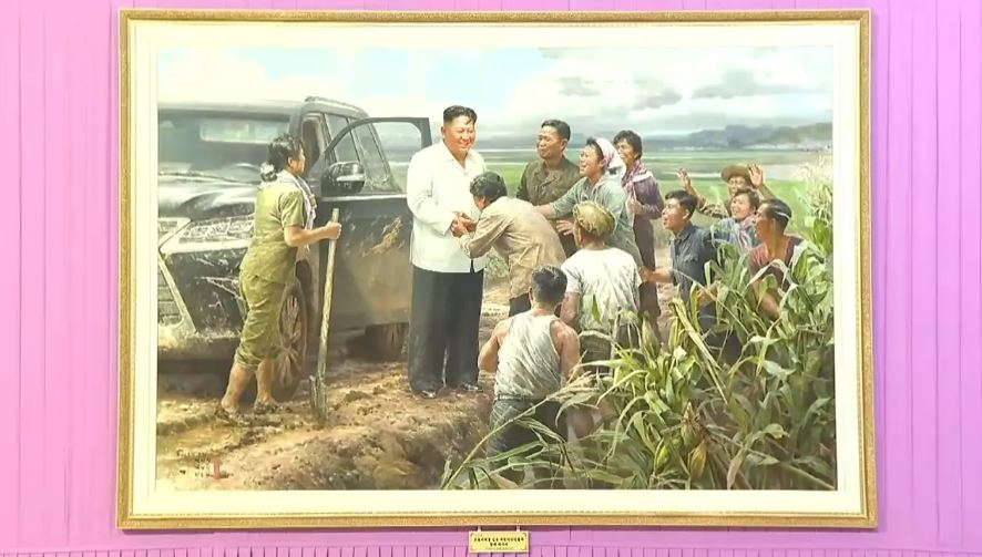 ووفق تقرير لشبكة فوكس نيوز الأمريكية، تستكمل اللوحات الجانب الدعائي لزعيم كوريا الشمالية وأسلافه، حيث تعكس كل قطعة بعض الرؤى الغريبة أو الرومانسية المفرطة للقادة التاريخيين الذين يظهرون في جو من التآلف مع المزارعين، إلى ركوب كيم جونغ أون على الخيل في قمة جبل بايكتو، أعلى قمة في كوريا الشمالية.