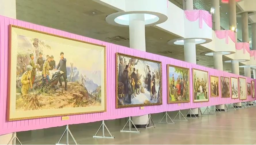 تضمن المعرض لوحات لأسلاف الرئيس الحالي، مثل كيم إيل سونغ وكيم جونغ إيل.