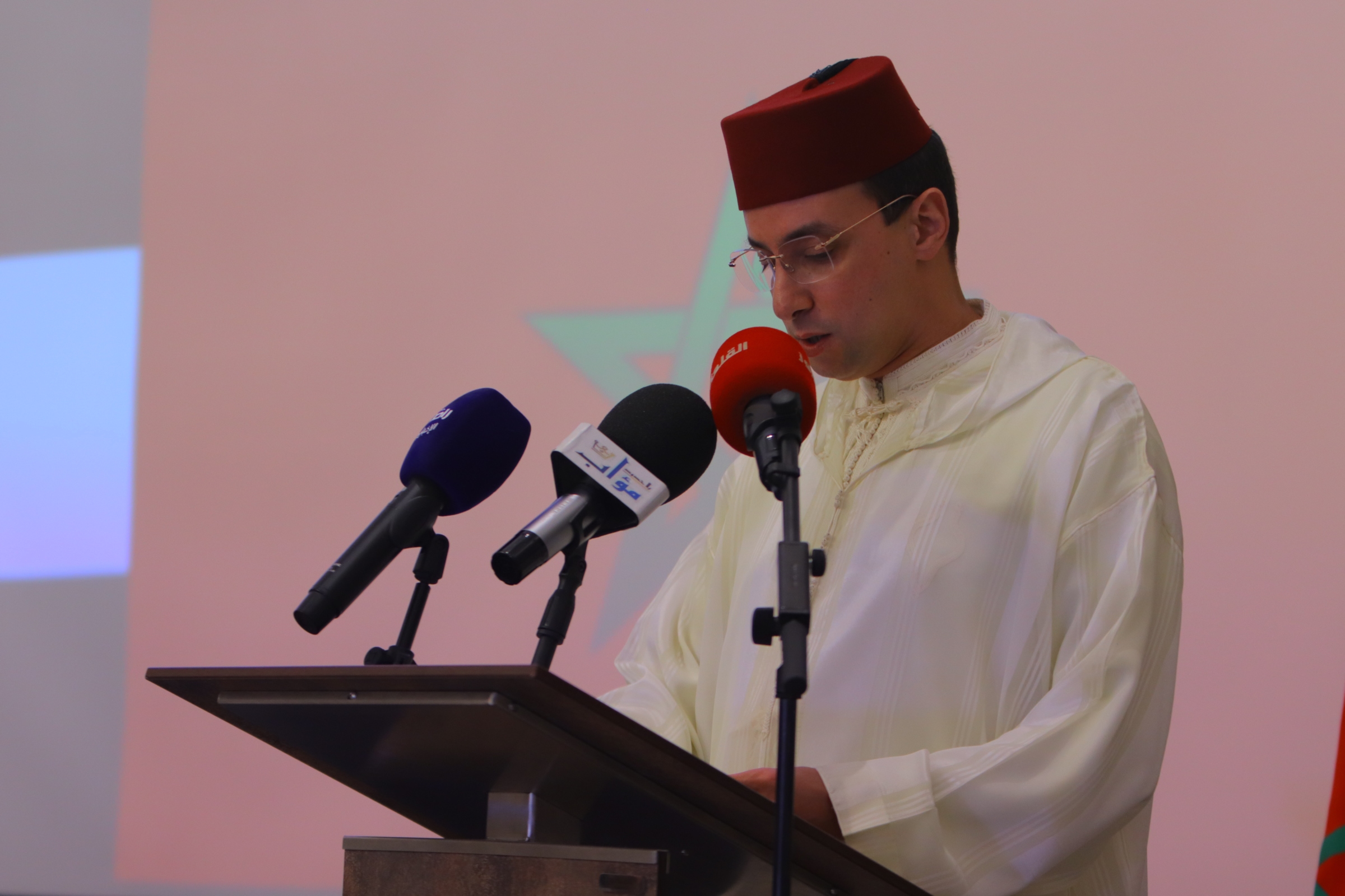 وأبرز السيد عادل أوسي حمو القائم باعمال السفارة المغربية في كلمة بالمناسبة الدلالات التاريخية والرمزية القوية للاحتفال بعيد العرش المجيد، والتي تعكس عمق العلاقات والروابط الوثيقة بين الملك والشعب المغربي ممثلة في تجديد عقد البيعة الذي يعتبر ومنذ عدة قرون ، الضامن لوحدة واستقرار المملكة