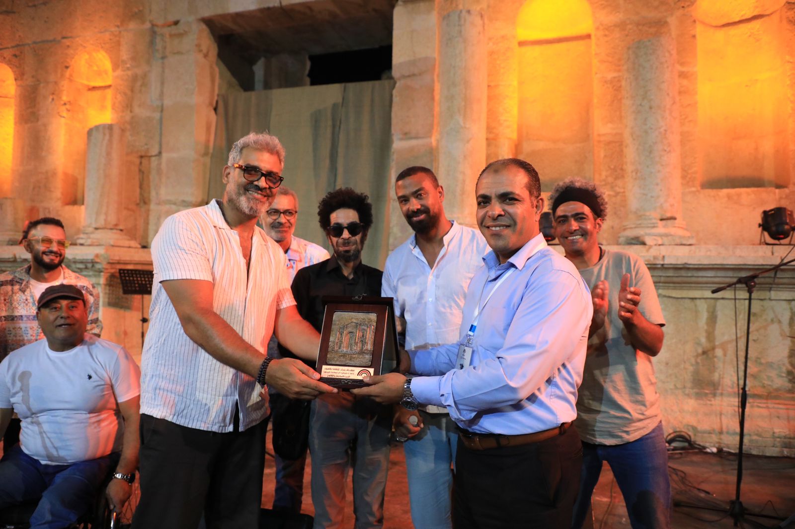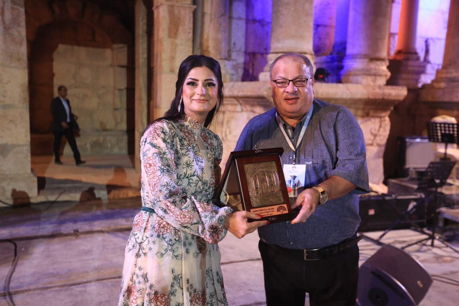 واختتم الحفل بتكريم ممثل إدارة مهرجان جرش ومدير مسرح الأدويون عطاالله الرواحنة للفنانين المشاركين على جهودهما في بث الفرح والحماس والأجواء الطربية على جمهور مسرح الأدويون.