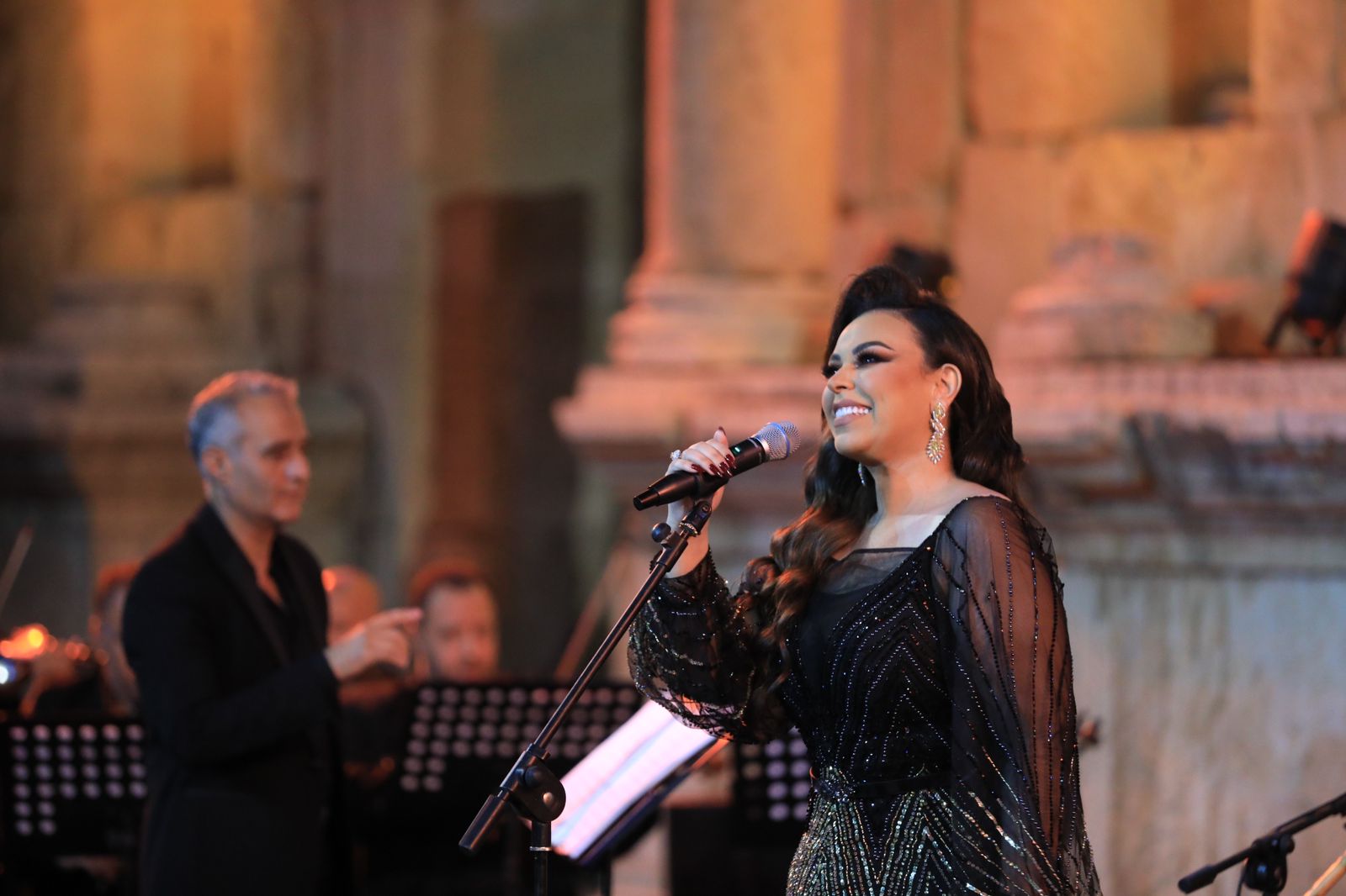 وقدمت الفنانة الأردنية بحفل مشترك على المدرج الجنوبي باقة من الأغاني الأردنية التي تفاعل معها الجمهور.
