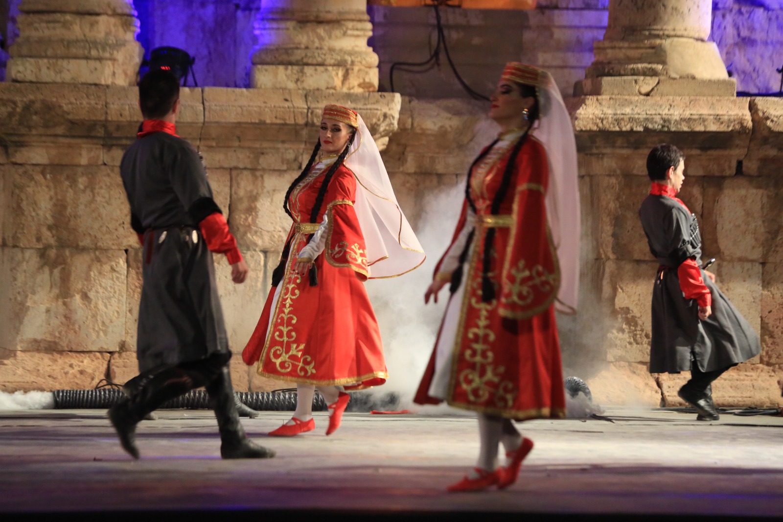 قدمت الفرقة الرقصات التالية : رقصة تعبيرية مسرحية عن مأسآة تهجير الشعب الشركسي، رقصة القافلة، المغني تشريم اوزروك، رقصة اسلامية، الفنان اسلان لبزو، رقصة الشباب(جوركسي)، المغني تشريم اوزروك، فقرة البربان و التنافس على مهارات الة الطبل، الفنان اسلان لبزو، رقصة ابخازي، المغني تشريم اوزروك، رقصة حكولاش، الفنان اسلان لبزو، رقصة تبرفة.