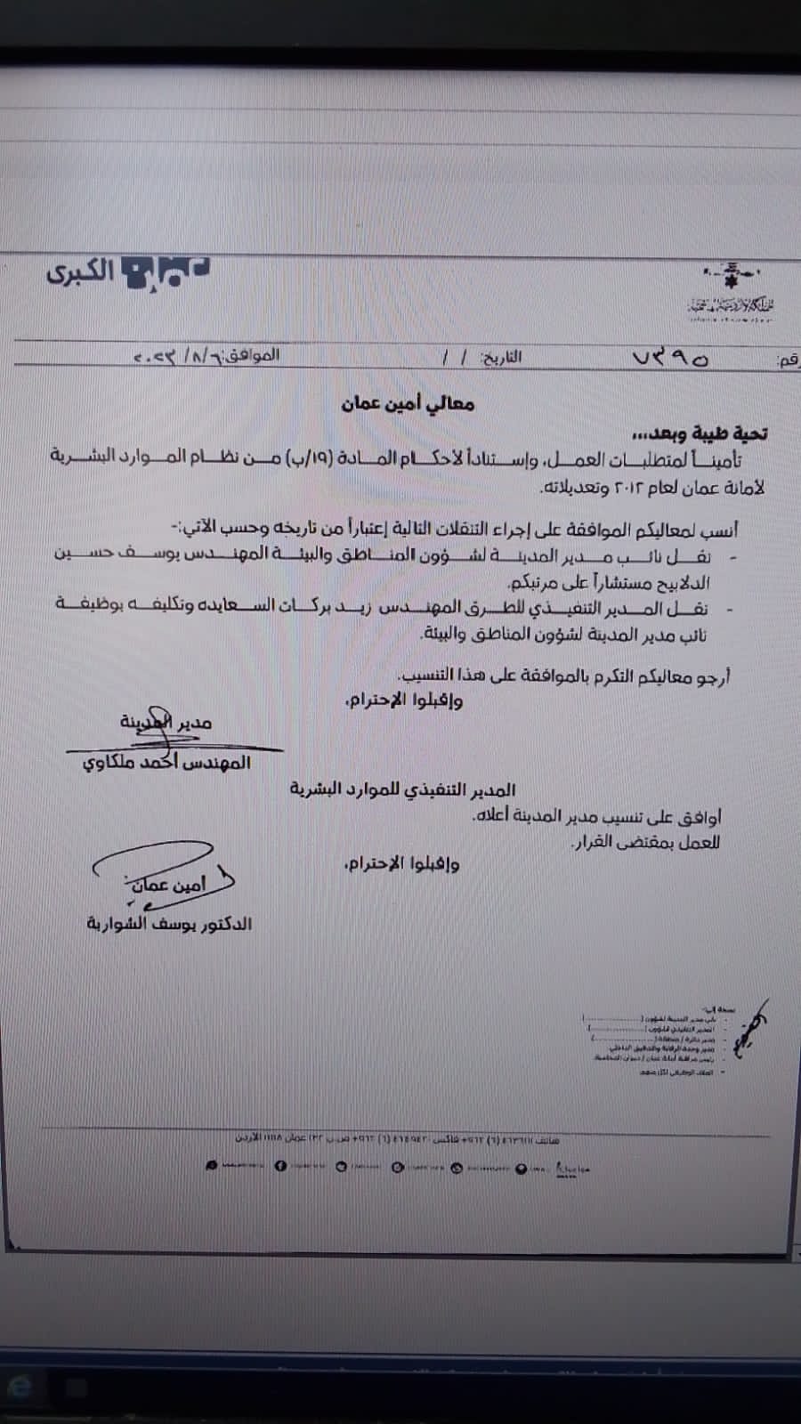 تنقلات واسعة في امانة عمان ( اسماء )