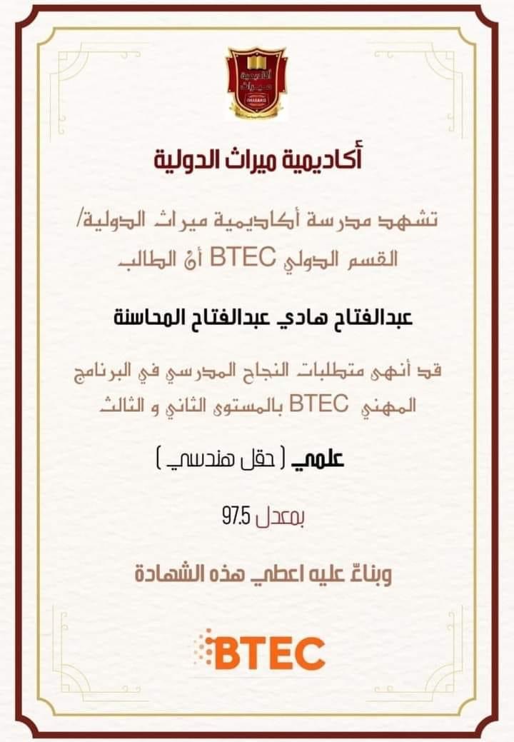 بمعدل 97,5 عبدالفتاح نجل الدكتور هادي المحاسنة يجتاز الثانوية العامة الفرع العلمي على نظام BTEC البريطاني