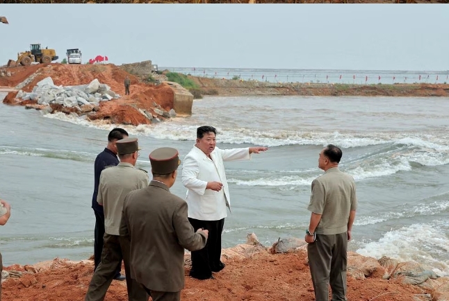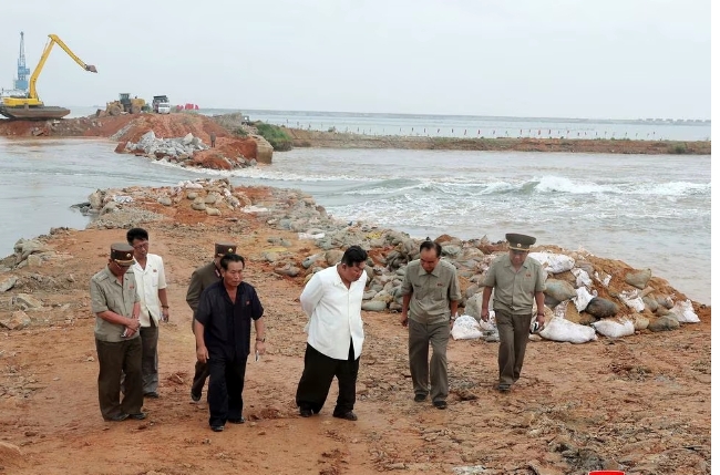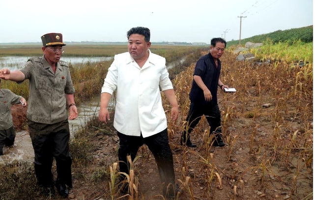 وأظهرت الصور التي بثتها وسائل الإعلام الرسمية، كيم في حقل أرز غمرته مياه الفيضانات في منطقة نامفو، وهو يعطي تعليمات لمسؤولين متجهمي الوجوه، فيما كان أحدهم يدوّن الملاحظات.