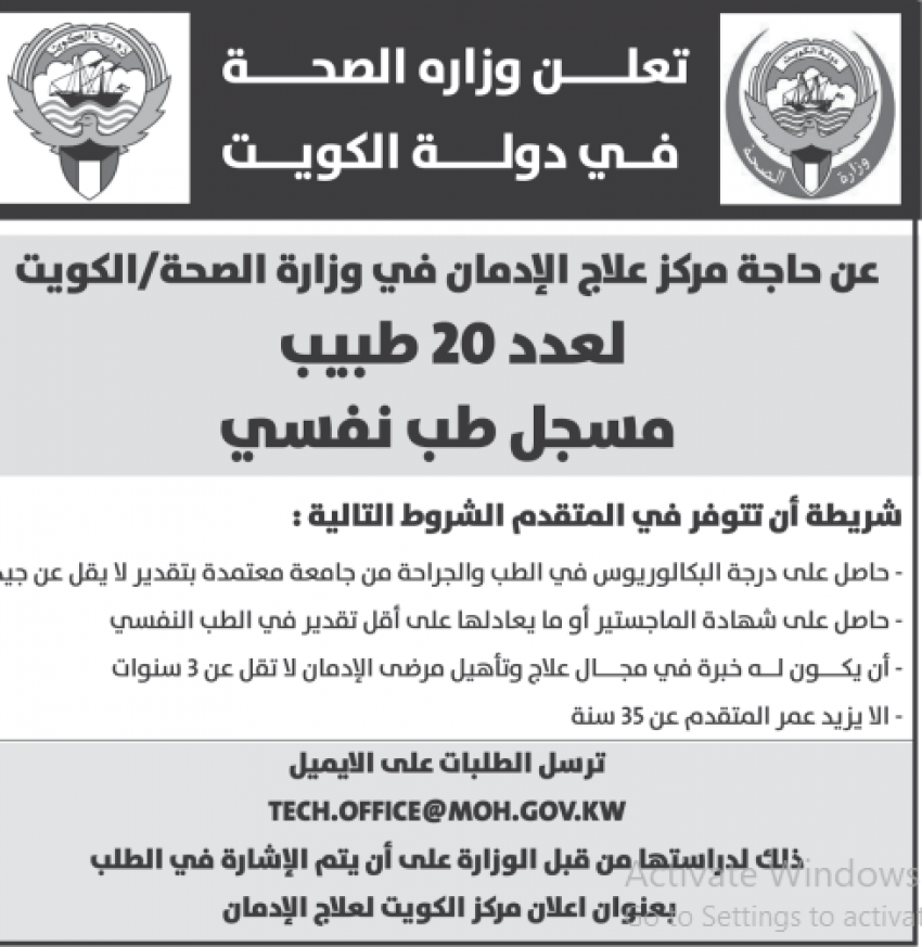 وظائف شاغرة لدى وزارة الصحة في الكويت