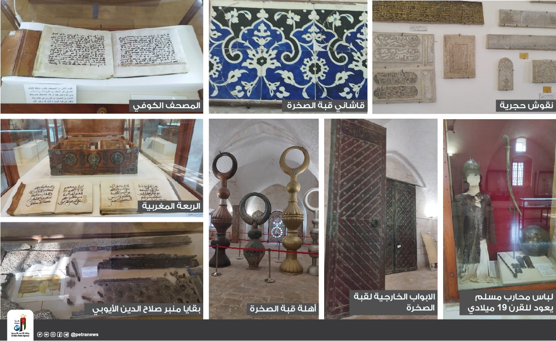ويحتوي المتحف على زخارف ورقوم حجرية، وعدد من النقوش الحجريّة التي تعود إلى أكثر من ألف سنة"، مشيرا الى أن رسالة ماجستير أعدها أحد الطلبة الأردنيين عن النقوش الحجرية البارزة في المتحف الإسلامي تحمل في طياتها أهمية كبرى في توثيق وجمع هذه النقوش، وسهلت على طاقم المتحف مهمة التعرف على أبرزها لإحصائها وتوثيقها.