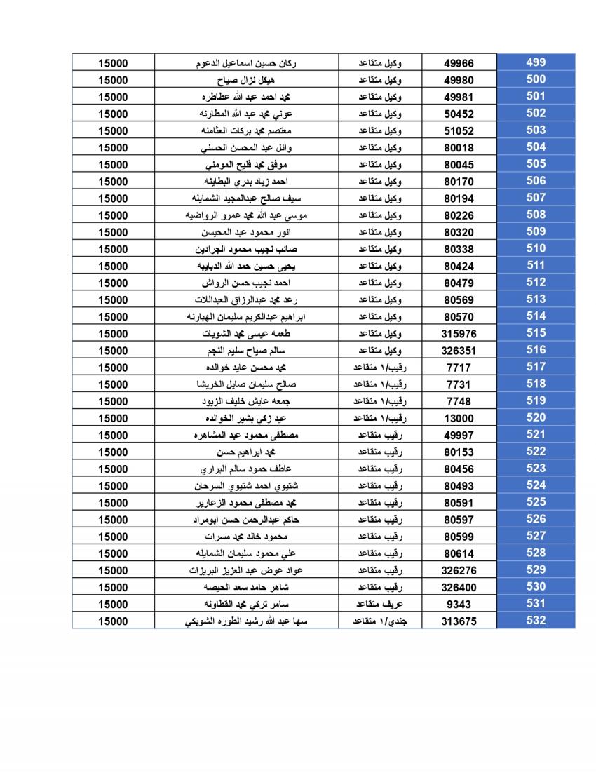 أسماء الضباط وضباط الصف والأفراد المستفيدين لدفعة شهر أيلول 2023