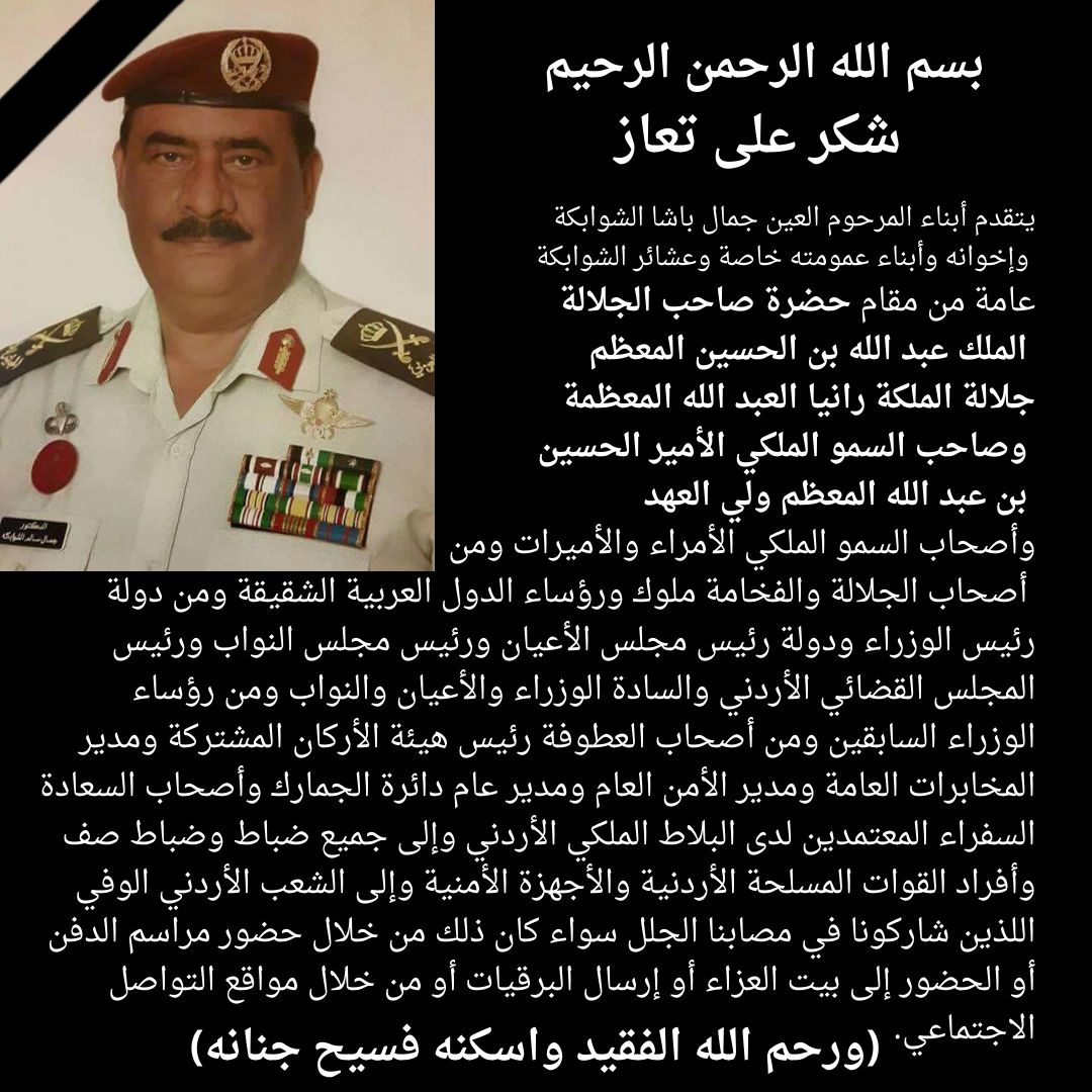 شكر على تعاز بالراحل العين جمال الشوابكة
