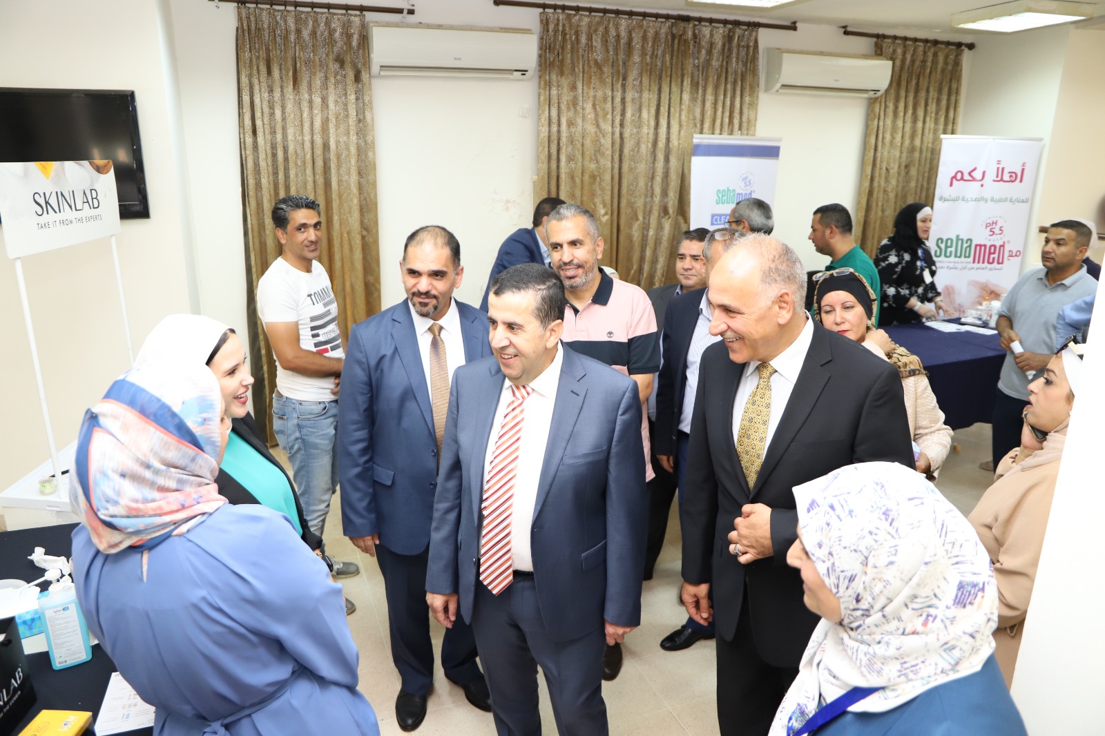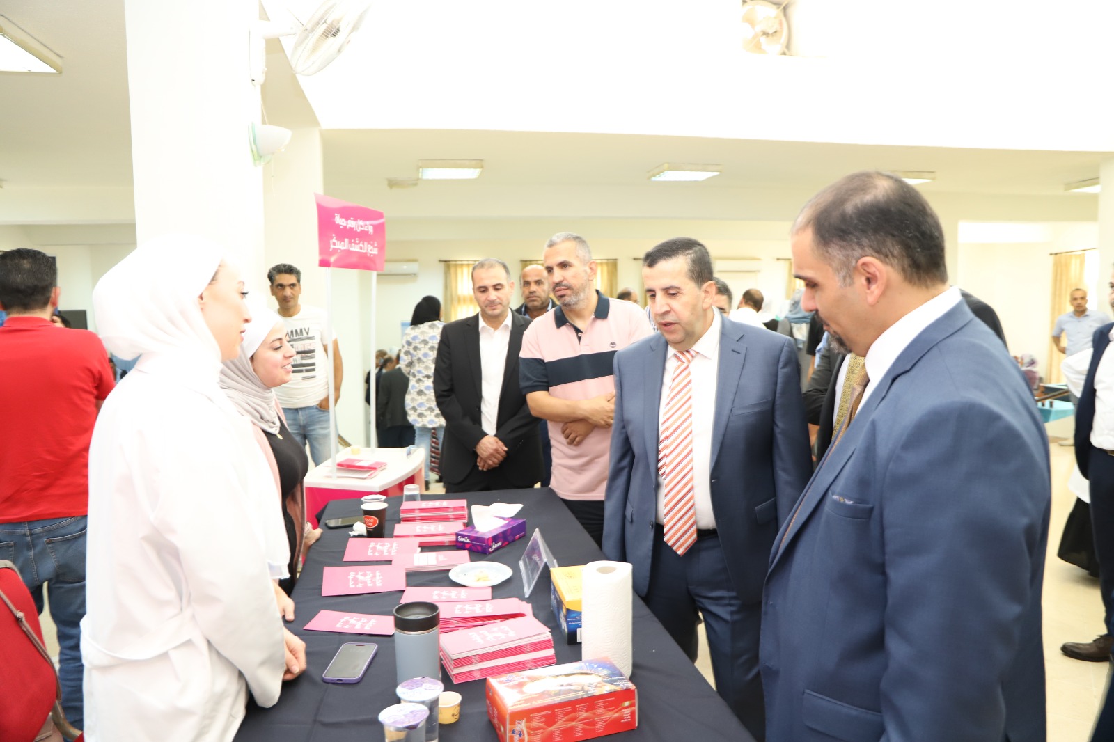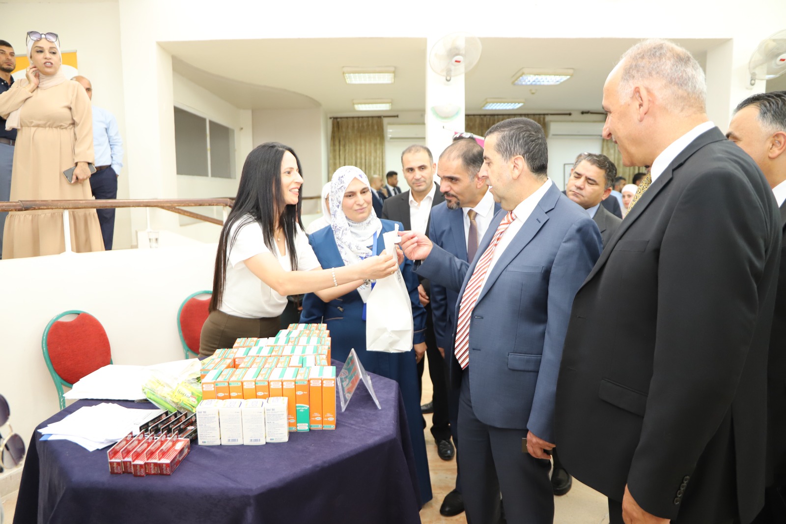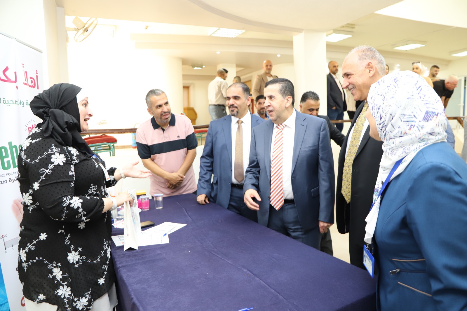 رعى رئيس جامعة البلقاء التطبيقية الاستاذ الدكتور احمد فخري العجلوني فعاليات اليوم الطبي المجاني الذي نظمته وحدة التامين الطبي بالتعاون مع نادي العاملين وبمشاركة مجموعة من الجهات الطبية وذلك في مقر النادي في الجامعة رئيس الجامعة الاستاذ الدكتور احمد فخري العجلوني عبر عن شكره وتقديره للمؤسسات الصحية وللأطباء المشاركين على تعاونهم الذي اسهم في انجاح هذا اليوم مبينا ان مثل تلك الأنشطة هي تعزيز للتعاون والشراكة ما بين الجامعة والقطاعات الطبية المختلفة لخدمة أسرة الجامعة والمجتمع المحلي. وتضمنت فعاليات هذا اليوم الطبي تقديم خدمات طبية في عدة اختصاصات وهي فحوصات الأمراض الجلدية والباطنية والجراحة العامة واستشارات في التغذية بالإضافة إلى إجراء فحوصات الضغط والسكري.وفحوصات البشرة بمشاركة أطباء من الجهات الطبية المشاركة في فعاليات هذا اليوم الطبي المجاني، بالإضافة أطباء وممرضي عيادة الجامعة، حيث قدموا الفحوصات والاستشارات الطبية للمراجعين من موظفي الجامعة وصرف الأدوية. هذا وقد كرم مدير وحدة التامين الطبي الدكتور بلال النسور مندوبا عن رئيس الجامعة الجهات الطبية المشاركة في هذا اليوم وهم مستشفى الاستقلال ومستشفى الشرق الاوسط للعيون ومركز ديكارت لطب وجراحة العيون وشركة سيبامبد للعناية بالبشرة وشركة سما الياسمين وصيدلية روحي وصيدلية سر الدواء ومركز الحسين للسرطان ومستودعات الدولية والتقدم ، ومستودعات الوافي ، ومستودعات عبق الياسمين ومختبرات ميدلاب والدكتور رضوان الدباس اختصاصي الجلدية.هذا وقد شهد اليوم الطبي والذي حضره افتتاح فعالياته نائب الرئيس للشؤون الادارية الاستاذ الدكتور خليل الحياري و مدير وحدة التامين الطبي الدكتور بلال النسور ورئيس نادي العاملين المهندس علي الدباس، إقبالا كبيرا من قبل اعضاء الهيئتين التدريسية والإدارية والطلبة في الجامعة.
