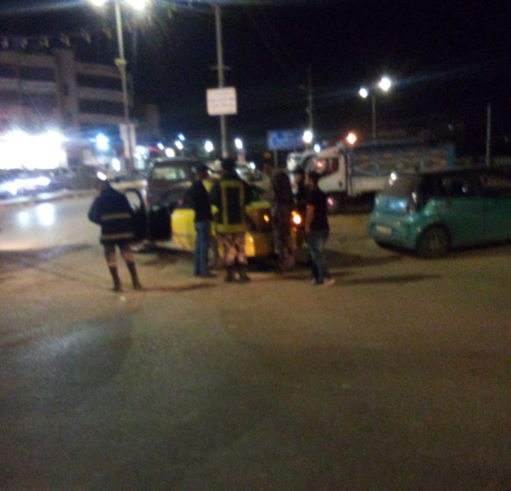 وقع حادث سير بين سيارتين خصوصي وسيارة عمومي على دوار الإتصالات في عين الباشا ونتج عنه إصابة سائق التكسي العمومي بغيبوبة سكري وتم إسعافه من قبل كوادر الدفاع المدني..