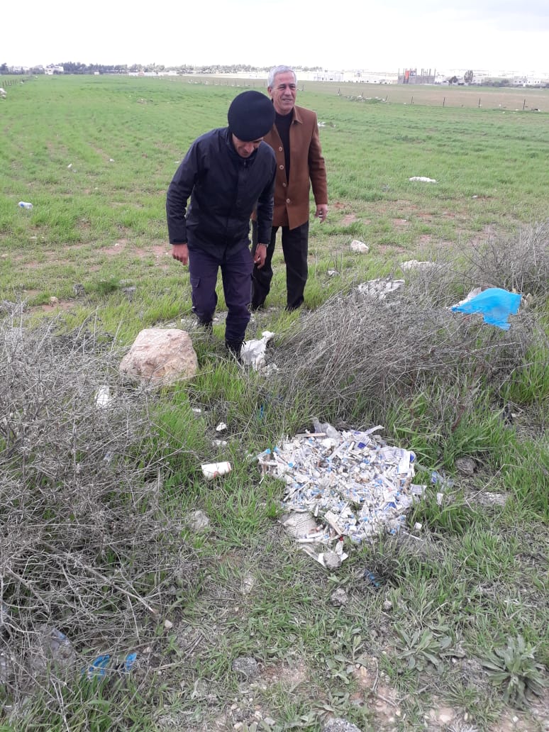 الاجهزه الأمنية تتحفظ على مستهلكات طبية مستعمله ملقاه على قارعة الطريق