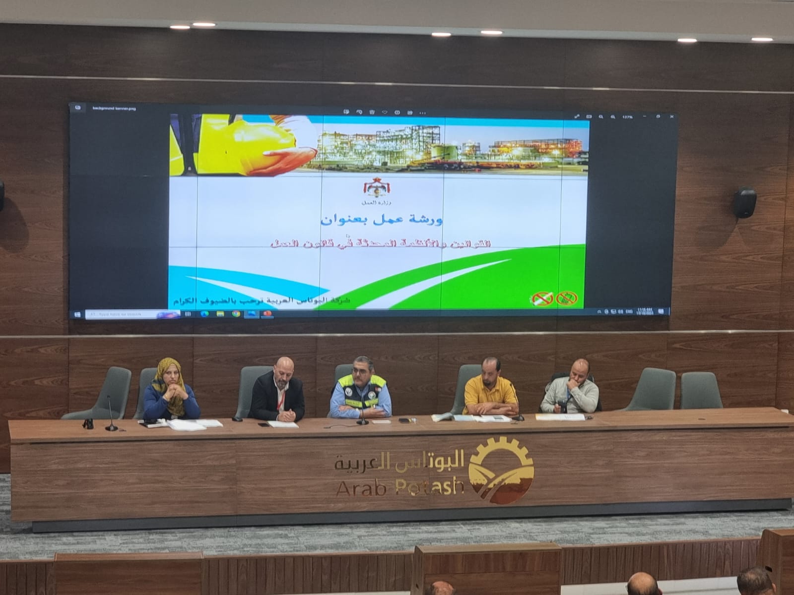 قامت مديرية عمل الكرك قسم السلامة والصحة المهنية بالتعاون مع شركة البوتاس العربية / إدارة البيئة و السلامة بعقد ورشة عمل حول القوانين والأنظمة المحدثة في قانون العمل.ولقد استهدف الورشه الشركات العامله في شركة البوتاس العربيه وعددها ما يقارب ٩٠ شركة.بعد أن رحب مدير إدارة البيئة والسلامه المهندس عبدالله شيخو بالمشاركينقدم رئيس قسم السلامة والصحة المهنية م لطفي الرواشده إيجاز عن دور وزارة العمل بتحديث الأنظمة لمواكبت التطور المستمر في جميع المجالات وقدمت المهندسة اماني العساسفة والسيد نشأت القويدر والمهندس معاذ الطراونة شرح تفصيل عن القوانين و الأنظمة المحدثه. ولقد شارك في الورشه ما يقارب ١٠٠ شخص من جميع الشركات ومن ذوي الاختصاص في مجال السلامه والصحة المهنية