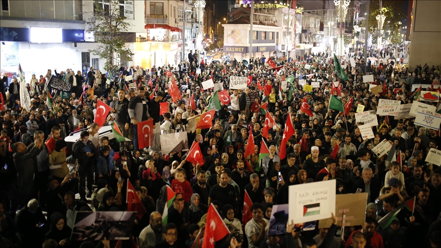 شهدت مدينة إسطنبول، السبت، مظاهرات عدة للتضامن مع فلسطين وأخرى للتنديد بالهجمات الإسرائيلية على غزة. وبمبادرة من الفرع الشبابي لهيئة الإغاثة الإنسانية التركية "İHH"، انطلقت مواكب سيارات في مناطق عدة بإسطنبول تحت شعار "اخرج إلى الطريق من أجل فلسطين". وتجمّع المشاركون في ختام الفعالية بمنطقة "جكما كوي" على الشق الآسيوي من إسطنبول، رافعين الأعلام التركية والفلسطينية، ومطلقين شعارات تتضامن مع فلسطين وتندد بإسرائيل. الفعالية التي رافقتها تدابير أمنية من قبل عناصر الشرطة، اختتمت بالدعاء لفلسطين ولسكان غزة.