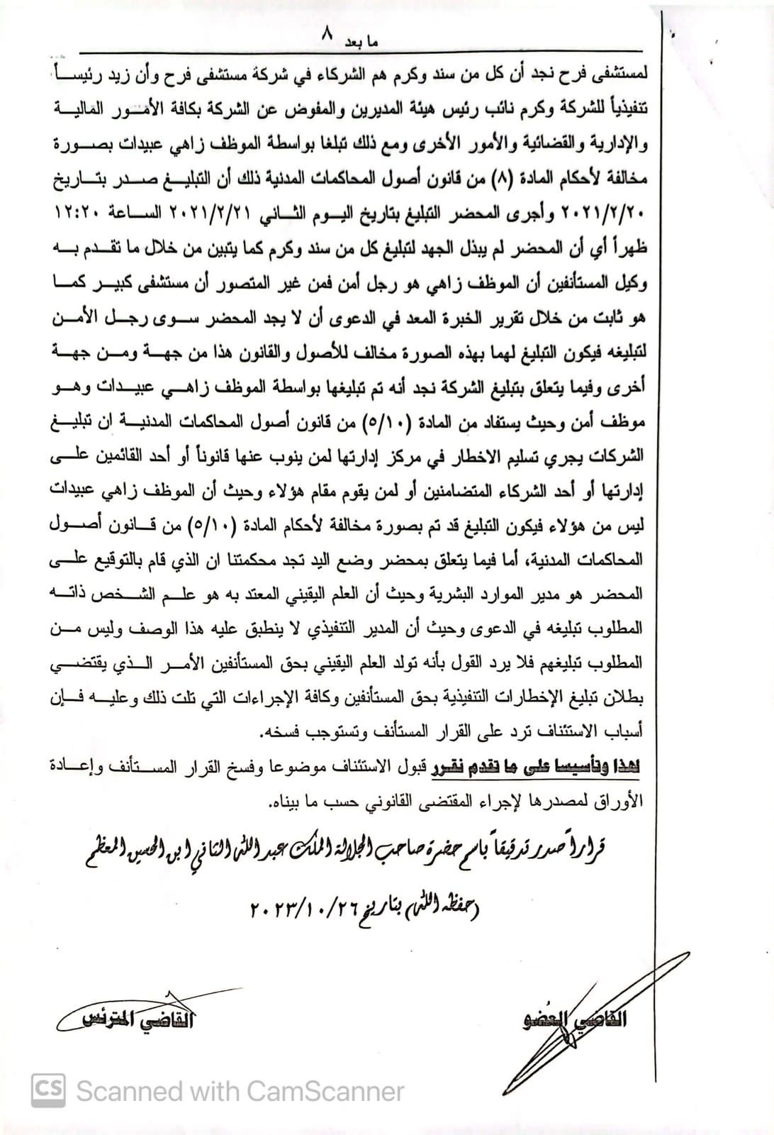 محكمة بداية عمان بصفتها الاستئنافية تنتصر لمستشفى فرح