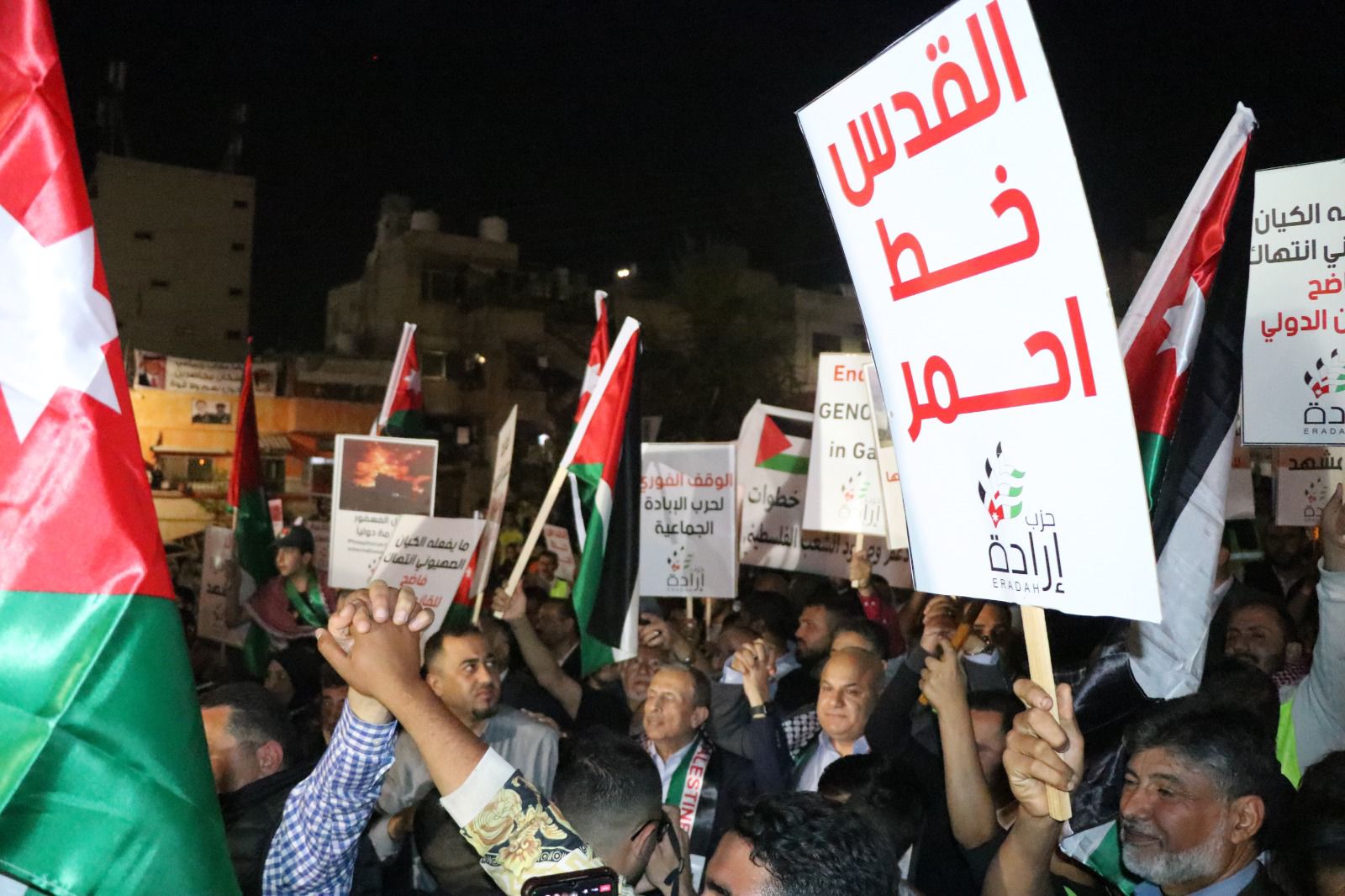 أقامت مجموعة أحزاب وطنية فعالية في مخيم الحسين اليوم نصرة للأهل في غزة وتنديدا بالمجازر الوحشية وحرب الإبادة الجماعية التي يمارسها الاحتلال الصهيوني بحق الأهل في قطاع غزة بشكل خاص ويمختلف المدن الفلسطينية وعلى رأسها مخيم جنين.والأحزاب التي نفذت الوقفة هي (حزب الائتلاف الوطني، وحزب تقدم، وحزب الديمقراطي الاجتماعي، وحزب إرادة وحزب الميثاق الوطني). وقال حزب الائتلاف الوطني في كلمته : يجب الضغط على قوات الاحتلال الصهيوني لوقف العدوان ، ووقف الجرائم النكراء ، وإن منع ادخال المساعدات الإنسانية إلى قطاع غزة جريمة كبرى ترتكب بحق الإنسانية في وقت فإن المدنين في غزة هم ضحايا القصف الإسرائيلي،، مطالبين المجتمع الدولي الضغط على كيان الإحتلال لإدخال المساعدات لغزة هاشم.كما ندد حزب تقدم خلال الوقفة التي شارك بها الآلاف بالمجازر الوحشية التي يرتكبها العدوان الإسرائيلي على اهلنا في غزة، بشكل يومي التي معظم ضحاياها من الأطفال والنساء وان هذه الجرائم الوحشية لن تزيد الشعب الفلسطيني الا ثباتا وصمودا دفاعا عن قضيتهم مطالبين بوقف هذه الجرائم فورا ومحاسبة الاحتلال عليهابدوره اكد الحزب الديمقراطي الاجتماعي أن ما يحدث في غزة ترفضه الإنسانية جمعاء، مشيرا على ضرورة اتخاذ موقف عربي موحد لصالح الأهل في غزة لوقف شلالات الدماء من المدنيين.فيما اشار حزب إرادة الى ان ما يشاهده العالم اليوم من حرائق ترتكبها القوات الغازية الصهيونية تعبر عن عقلية النازية الجديدة التي لا تعرف الا القتل و المجازر ، مطالبا بقطع العلاقات نهائيا مع الصهاينة خاصة ما يتعلق بالغاء كافة الاتفاقيات مع العدو الصهيوني ، مؤكدا أن العدوان الإسرائيلي لا يزيدنا الا إصرارا على دعم كافة أشكال الصمود الفلسطيني.فيما لفت حزب الميثاق إلى ضرورة توثيق الجرائم التي يرتكبها الاحتلال بحق الأهل في غزة لملاحقة قادة جيشه أمام المحكمة الجنائية الدولية كمجرمي حرب،، واصفا أن ما يحدث في غزة ومخيم جنين أيضا خلال اليومين الماضيين هو أقرب إلى تطهير عرقي يمارسه الاحتلال بغية دفع الفلسطينين على التهجير.