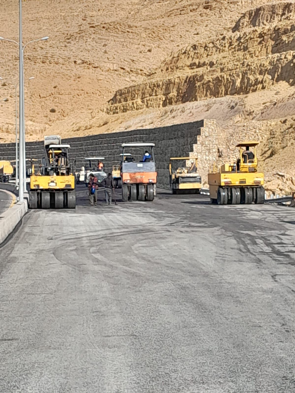 وأشار الى انه تم خلع الطبقات الأسفلتية القائمة وطبقات الرصف، وصولا الى تنفيذ طبقات التأسيس والرصف شاملا طبقتي الفرشيات وثلاث طبقات من الخلطة الأسفلتية بسماكة 21 سم بحسب الدراسات التي تمت لهذه الطبقات.وتشمل الأعمال ايضا، بحسب المحارمة، توسعة المسارب القائمة لتصبح 3 مسارب وكتفاً للقادم من العقبة باتجاه عمان، ومسربين وكتفا للسير القادم من عمان باتجاه العقبة بمقطع عرضي مشابه لما تم تنفيذه في مشروع إعادة إنشاء الطريق الصحراوي.