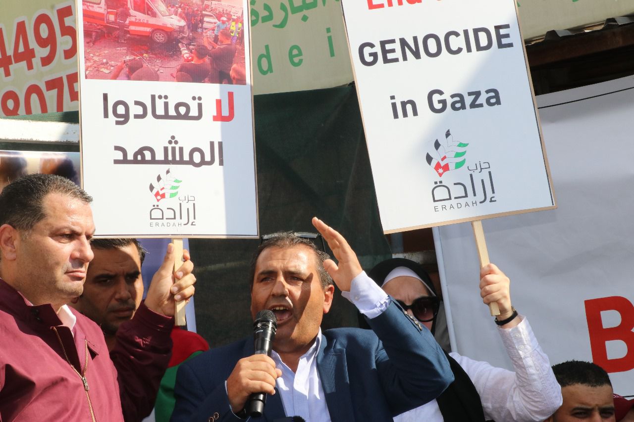 وقفة تضامنية مع الاشقاء الفلسطينيين لحزب إرادة في مخيم غزة بحرش ..صور