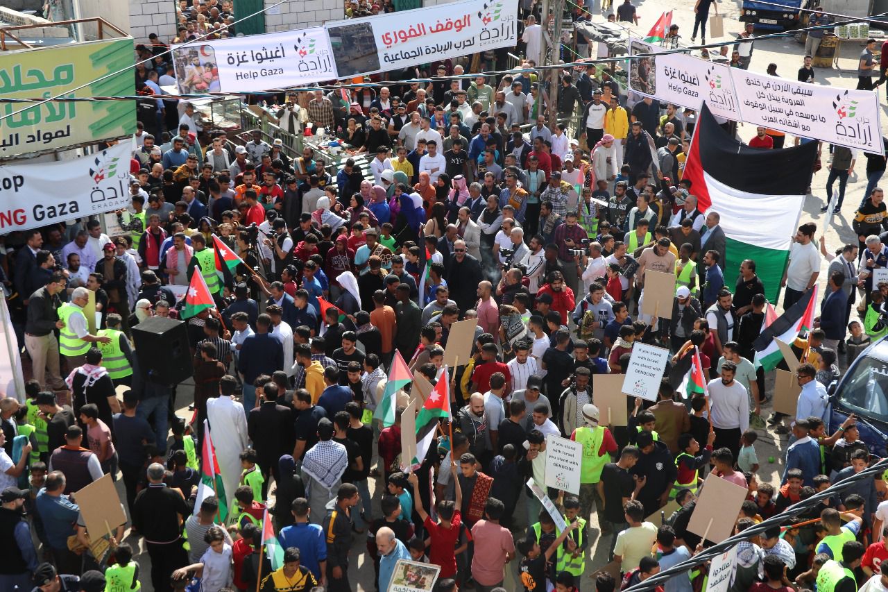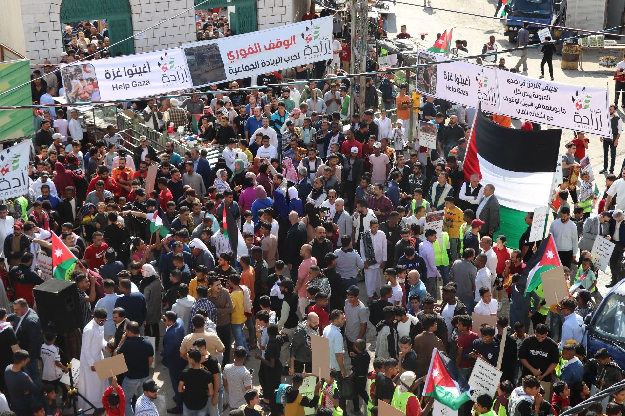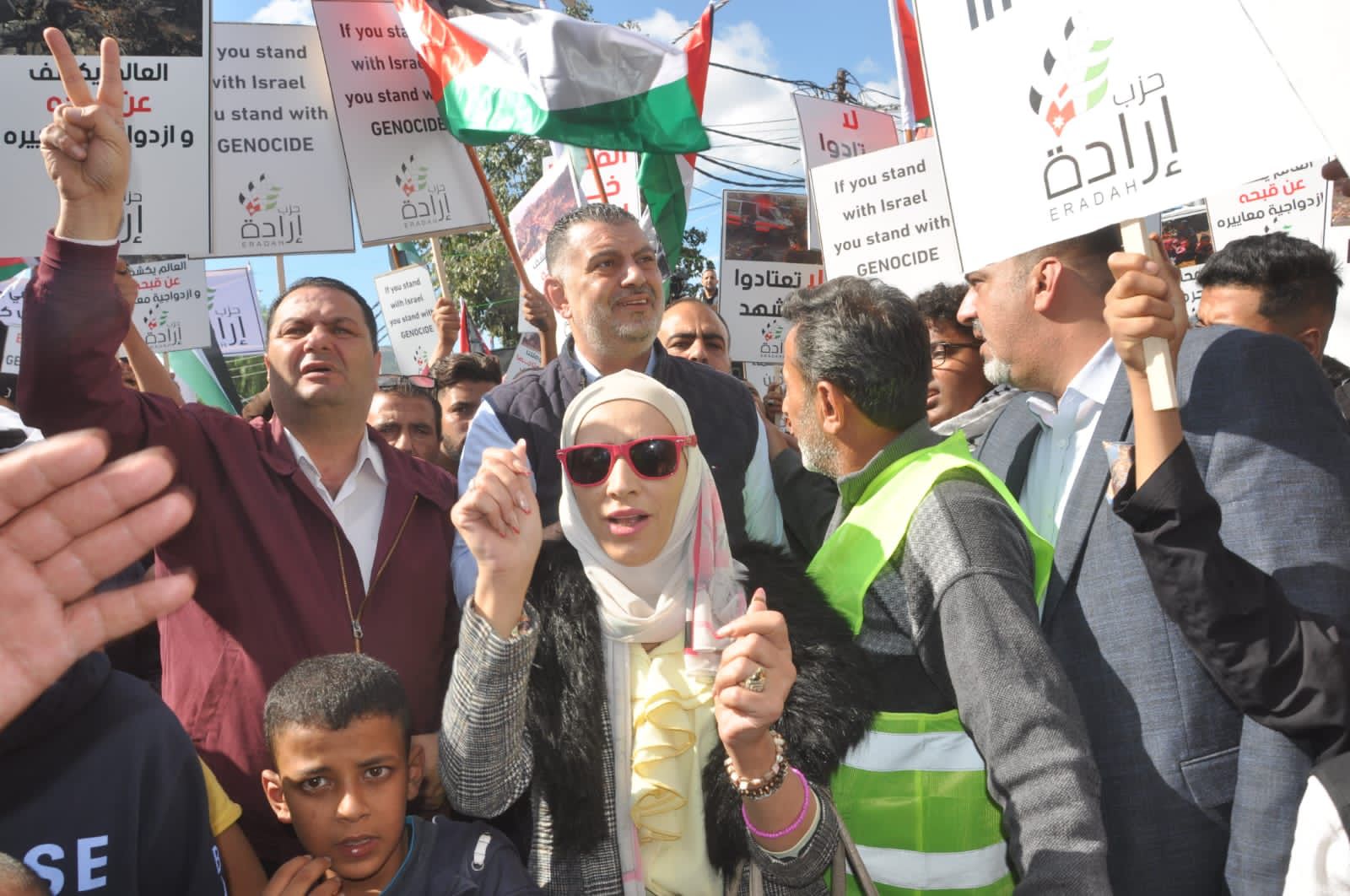 نفذ حزب إرادة والذي يظهر حراكاً نشطاً خلال حرب غزة بعد صلاة الجمعة اليوم في مخيم جرش ( مخيم غزة ) وقفة تضامنية مع الاشقاء الفلسطينيين الذين يواجهون عدواناً مستعراً منذ اكثر من أربعين يوما ً وتأييداً لمواقف الأردن الداعمة للأشقاء والمطالبة بوقف اطلاق النار.وقال الأمين العام لحزب إرادة نضال البطاينة في كلمة له وسط الحشود " لله درك يا غزة التي قطعت عنك كل شرايين الحياة، والموت لإسرائيل الذين يستغلوا الغطاء الغير مسبوق من الولايات المتحدة، وعاشت غزة وفلسطين والأردن حرة ابية.وأضاف ان جلالة الملك قالها اذا تركنا نحن في الأردن وفلسطين وحدنا وها نحن نترك وحيدون لن يهنأ العرب والعالم بالامن والسلام حتى ينال الشعب الفلسطيني حقوقه الكاملة على ترابه .وحيا البطاينة قرارات الأردن بقيادة جلالة الملك بوقف التوقيع على اتفاقية الطاقة مقابل المياه وعدم عودة سفير الكيان الصهيوني وسحب سفيرنا وقرار ارسال مستشفى ميداني الى نابلس الى جانب مستشفى غزة ومركزين للعمليات. وشدد ان فلسطين والأردن وجهان لعملة واحدة واليوم كلنا فلسطينيون لان البوصلة فلسطين وكلنا اردنيون لان الأردن في عين العاصفة.واكد رئيس فرع حزب إرادة في محافظة جرش الباشا محمد فرغل دعم صمود الاشقاء في غزة وفلسطين في مواجهة هذا العدوان المستمر بكل ما نستطيع متعهداً امام الله اننا مستعدون ان نضحي بارواحنا من اجل الأردن وفلسطين مستنكرا جرائم الإبادة الجماعية ضد الاهل في غزة والمواقف الغربية الداعمة للعدوان على غزة.ودعا الى الوقوف الى صف الموقف الأردني الداعم للاشقاء بقيادة جلالة الملك عبدالله الثاني المعظم للتخفيف عن الاشقاء ووقف العدوان الصهيومي مشددا أهمية تقديم كل اشكال الدعم للاشقاء في غزة بكل ما نستطيع.وحيا رئيس المجلس الوطني لحزب إرادة خميس عطية صمود غزة بشيوخها واطفالها ونسائها واطفالها ورجاله ومقاومتها الصامدة وشهدائها وجرحاها الذين علمونا معنى التضحية والفداء والصبر على الشدائد فغزة اليوم تعاني بفعل آلة الاجرام الصهيوني المدعومة أمريكيا فالادارة الامريكية شريكة بالعدوان على اطفال ونساء غزة ومستشفيات غزة . وأضاف ان غزة اسقطت الانسانية والادعاءات الغربية بحقوق الانسان والقانون الدولي، داعيا الى محاكمة قادة الصهاينة امام محكمة الجنايات الدولية، مؤكدا ان حضور هذه الحشود هذه الفعالية دعما للاهل في غزة فنحن مع غزة ولا نتضامن معم فقط بل نحن في خندق غزة ضد الصهاينة ولن نتركها وحيدة ونصرتها واجب ديني. ووجهت النائب فايزة عضيبات التحية لصمود الاشقاء في قطاع غزة في مواجهة العدوان الصهيوني مشددة اننا في الأردن بقيادة جلالة الملك ندعم الاشقاء بكل اشكال الدعم ونقدم ارواحنا رخيصة فداء للاردن وفلسطين.وقال عضو المجلس المركزي في حزب إرادة النائب محمد الظهراوي اننا منتصرون فخلال اكثر من أربعين يوما والشهداء يرتقون مشددا ان غزة كشفت من معنا ومن ضدنا وسنبقى في الأردن بقيادة جلالة الملك عبدالله الثاني الداعمين لفلسطين وصمودها .واستنكر المواقف الغربية الداعمة للعدوان الصهيوني والتي كشفها العدوان على غزة بان حقوق الانسان كذبة غربية.وعبر الشاب سيف بني مصطفى باسم ملتقى شباب جرش عن دعمه للموقف الأردني الداعم والمساند للاشقاء في فلسطين مستنكرا العدوان المتواصل على الاشقاء الذي استهدف الأطفال والنساء والمدنيين وكل شيئ في غزة.واكد الدكتور راكز الحباشنة دعم صمود الاشقاء في غزة والمطالبة بوقف العدوان الغاشم الذي يستهدف الأطفال والنساء، مؤكدا ان الأردن بكل مدنه وقراه وبواديه مع فلسطين وقضيتها العادلة.وردد المشاركون شعارات وهتافات مناصرة للاشقاء وصمودهم وتحيي الموقف الأردني الداعم لهم ومنها:علو الصوت يا شباب أمريكا راس الإرهاببايدن يا كذاب انت الداعم للارهاب وحدتنا هي الأساس نسقي العدا مر الكاس حلفاء إسرائيل يتحملون مسؤولية جرائم الكيان الهمجياستهداف الأطفال والمدنيين جرائم حربالوقف الفوري لحرب الإبادة الجما