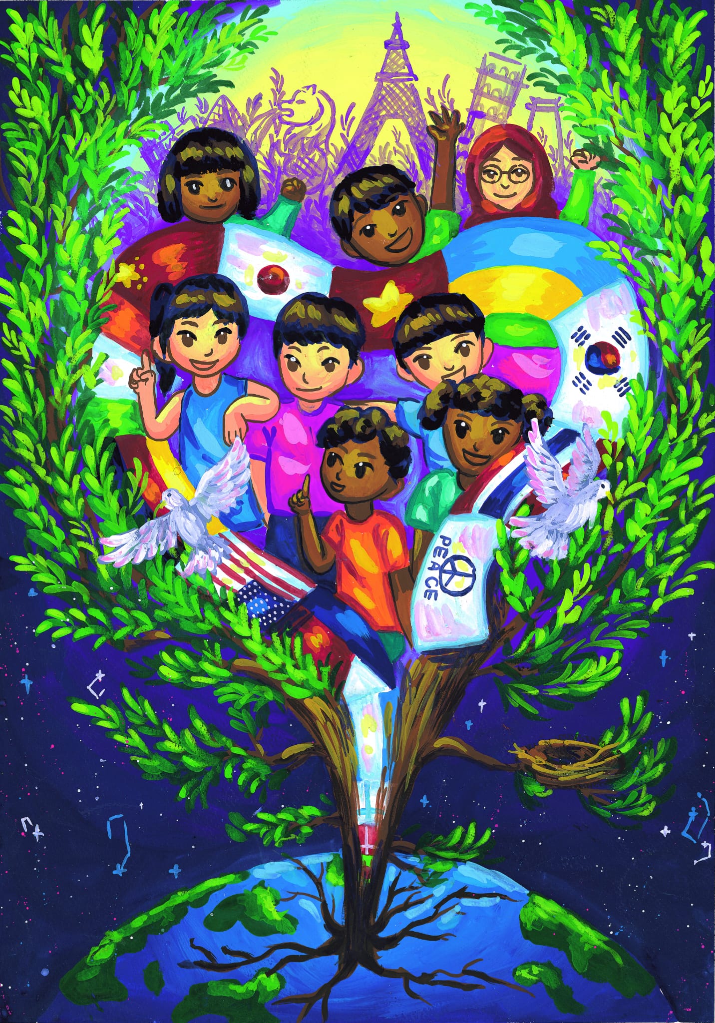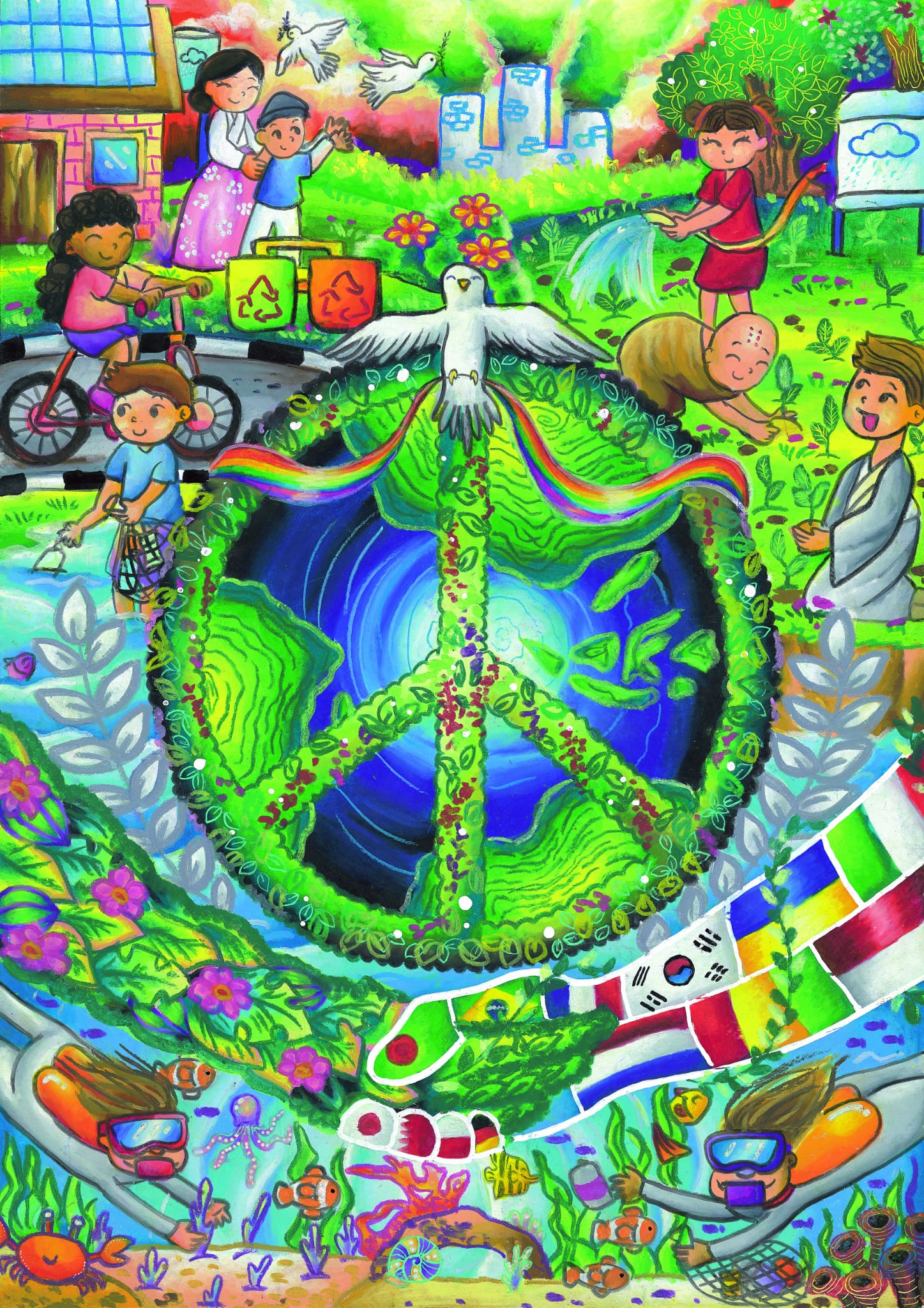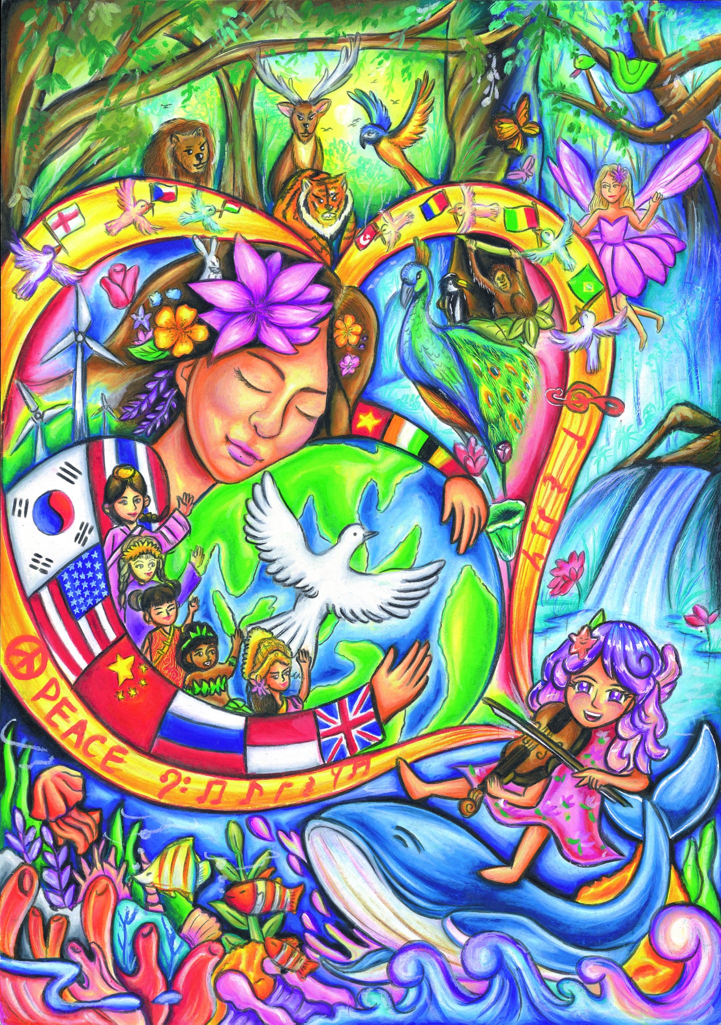 أقامت مجموعة السلام النسائية الدولية IWPG، حفل توزيع الجوائز النهائية للمسابقة الدولية الخامسة لفنون المحبة والسلام، بمشاركة 10025 طفل وشاب من61 دولة.ويعد هذا الحدث، جزءًا من مبادرة IWPG لنشر ثقافة السلام حول العالم، من خلال زرع عقلية السلام في قلوب الأطفال والشباب حتى يتمكن الجميع من الاجتماع معًا لتحقيق السلام العالمي ووقف الحرب. وتعاونت IWPG مع جمعيات الفنون/الفنانين الوطنية لتقييم الرسومات واختارت أخيرًا 43 قطعة بما في ذلك الجائزة الكبرى؛ جائزة ذهبية واحدة، وجائزة فضية واحدة، وجائزة برونزية واحدة لكل قسم من الأقسام الثلاثة (9 في المجموع)، و5 جوائز تقدير لكل قسم (15 في المجموع)، وجوائز المشاركة.وقال رئيس لجنة التحكيم، السيد كاني علوي، رئيس معرض إيست سايد: “من خلال هذا المؤتمر الدولي، يجب علينا نشر أخبار السلام للناس في جميع أنحاء العالم، وأعتقد أنه إذا استمر هذا التعاون السلمي، فإن وقت السلام سيأتي أخيرًا.وقال كانوكنوك كلاهان (تايلاند، مدرسة سريبرويتا، قسم المدارس الثانوية)، الذي حظي بشرف الفوز بالجائزة الكبرى: "من خلال هذه الصورة، أريد أن أنقل وحدة شعب كل دولة في العالم، وأتمنى أن يساعد الجميع على هذا الكوكب في تحقيق السلام”.وفاز بالجائزة الذهبية جنيفر شارون (إندونيسيا، قسم المدارس الابتدائية)، ويو جيونغ جون (جمهورية كوريا، قسم المدارس المتوسطة)، وكلاريسا يوسلين (إندونيسيا، قسم المدارس الثانوية).فيما فاز بالجائزة الفضية جينكس لياقت (باكستان، القسم الابتدائي)، وناتاليا جاي شين هو (ماليزيا، قسم المدارس المتوسطة)، وحسام صلاح (فلسطين، قسم المدارس الثانوية)، ومُنحت الجائزة البرونزية إلى ميكايلا ألينا سوكما سابوترو (إندونيسيا، قسم المدارس الابتدائية)، وبريانكا شوبرا (إندونيسيا، قسم المدارس المتوسطة)، وهيون سو لي (جمهورية كوريا، قسم المدارس الثانوية).وفاز بجائزة التقدير ألسي داهنيا زيا إم. يارا (الفلبين)، شيرلي أنيكيت مور (الهند)، يو جيونج تشوي (جمهورية كوريا)، ناثانان تشونغكيتويتسواكان (تايلاند)، نافانييتا إيه/بي جيفان (ماليزيا)، محمد يوسف ( فلسطين)، تشانانيا ثونج ثوي (تايلاند)، ماهين جولزار (باكستان)، بوريفدورج إيتجيلين (منغوليا)، شيخ صايمة محمد يوسف (الهند)، دانيا عائشة بنت زهيري أريفين (ماليزيا)، خالزا إنخسران (منغوليا)، دانييل سواريز (الولايات المتحدة الأمريكية)، وجواهر عبد الله الغول (لبنان)، وكاترينا فرسكوفا (الجمهورية التشيكية).كما تم اختيار كايلي لي كينيدي و8 رسمات أخرى للحصول على جائزة المشاركة.وسيحصل الفائز بالجائزة الكبرى على منحة قدرها مليون وون كوري، في حين سيحصل الفائزون بالجائزة الذهبية والفضية والبرونزية على 300000 وون كوري و200000 وون كوري و100000 وون كوري على التوالي، كما سيحصل الفائزون بجائزة التقدير على شهادة، وسيتم عرض جميع القطع الحائزة على الجوائز في الكتيب الفني.وفي كلمة التهنئة، قالت رئيسة IWPG هيون سوك يون: “لقد نظرت إلى رسومات الجميع عن كثب، عالم السلام الذي يحلم به كل طفل، وأتمنى أن يتذكر الجميع روح السلام هذه ويسعوا جاهدين ليصبحوا قادة يجلبون السلام إلى العالم.وتخطط IWPG لاستضافة المسابقة الدولية السادسة لفنون المحبة والسلام مرة أخرى في العام المقبل.