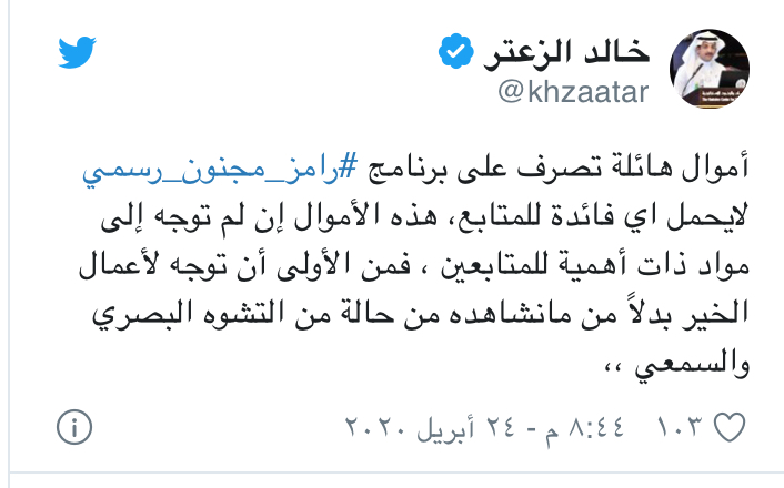 ورأى غنيم أن برنامج رامز له تأثير على "الوعي" كونه يحتل حيزا من وقت وأفكار المشاهد، ما سيجعل الأمور التي يفعلها جلال تنتشر في المجتمع، حسبما رأى الناشط المصري، وأطلق غنيم وسم "رامز خطر رسمي"، وأشار إلى أنه سيصبح "ترند" على موقع تويتر، على حد قوله