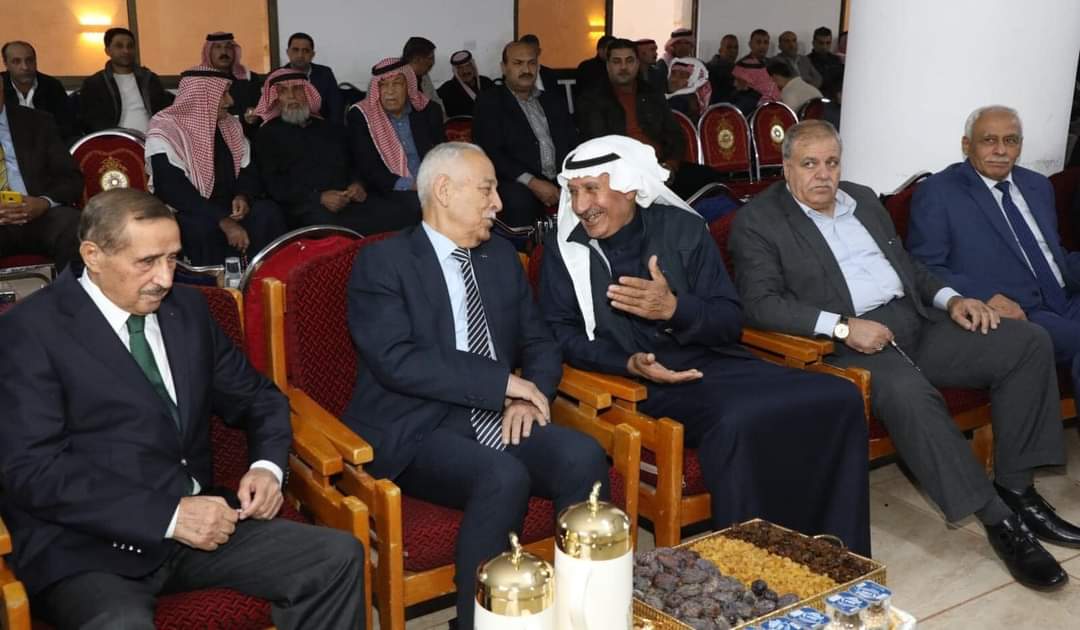 مندوبا عن جلالة الملك عبدالله الثاني بن الحسين وسمو ولي العهد قدم معالي رئيس الديوان الملكي الهاشمي يوسف حسن العيسوي واجب العزاء بوفاة المرحوم المختار عطا جودة العيد القلالبة المناصير(ابو زيد).